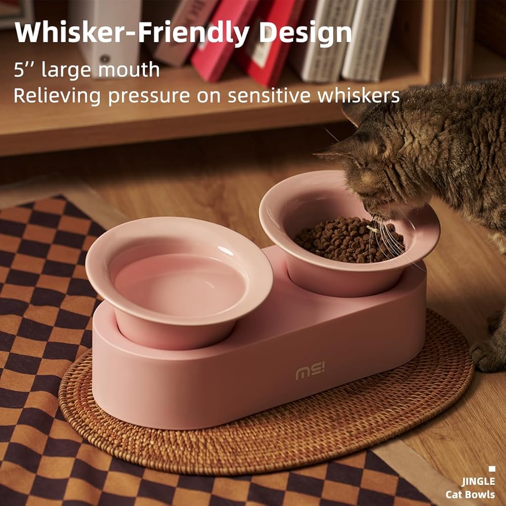 🐈 [Whisker-Friendly and Mess-Free] - The spacious mouth of this tilted cat bowls reduces whisker pressure, and the wider rim minimizes spills, keeping mealtime clean and comfortable