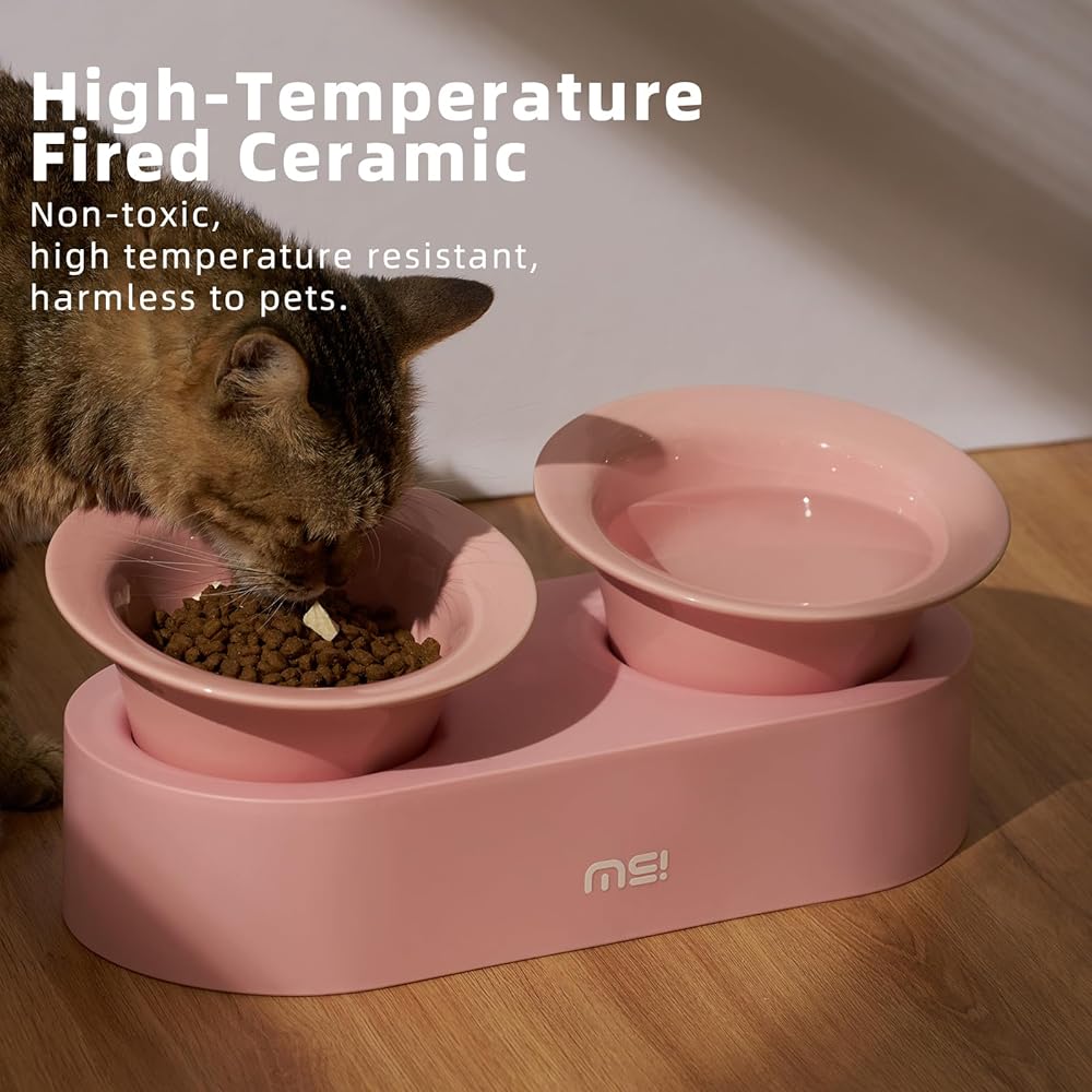 😸 [Dual Bowls for Ultimate Convenience] - This MS dog cat bowls serve food and water in one place with two high-quality ceramic bowls, providing a complete feeding solution