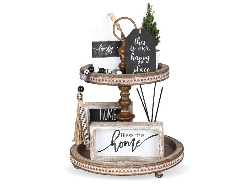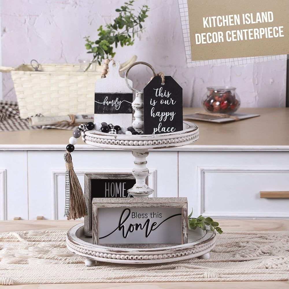 Create Your Own Kitchen Table Centerpiece: This two tiered tray farmhouse is perfect for styling an everyday centerpiece or setting up for holidays and special occasions. Add your favorite mini decor items and enjoy!