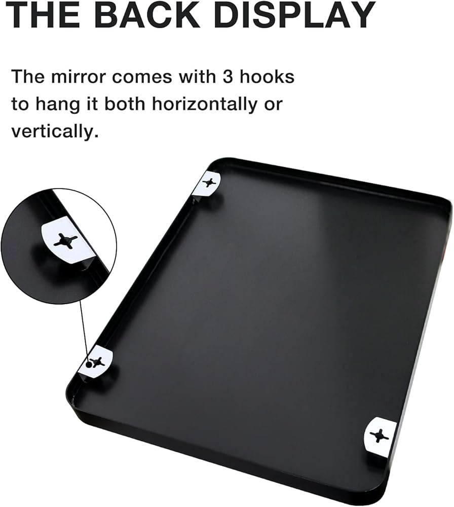 Premium Quality: This mirror provides you a clear and nature image, no reflection distortion. The mirror is recessed into the metal frame, stable and well made, not easy to damage.