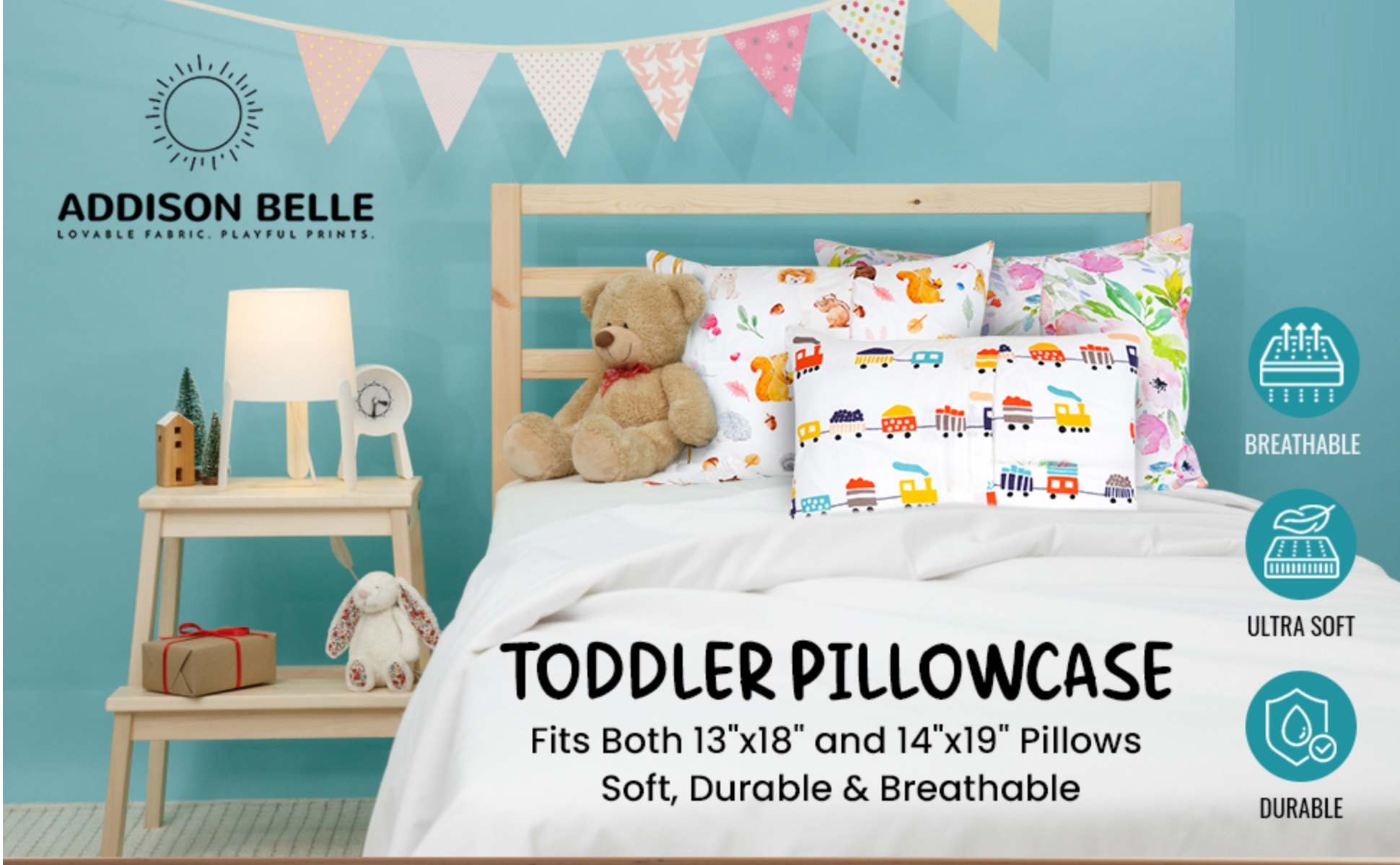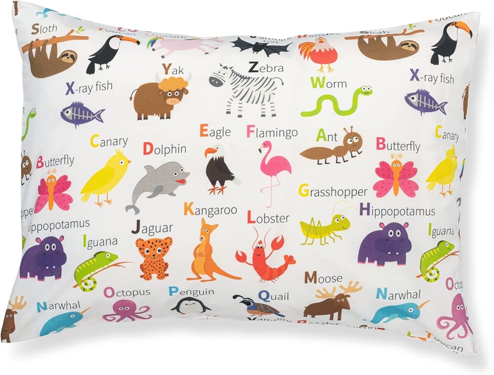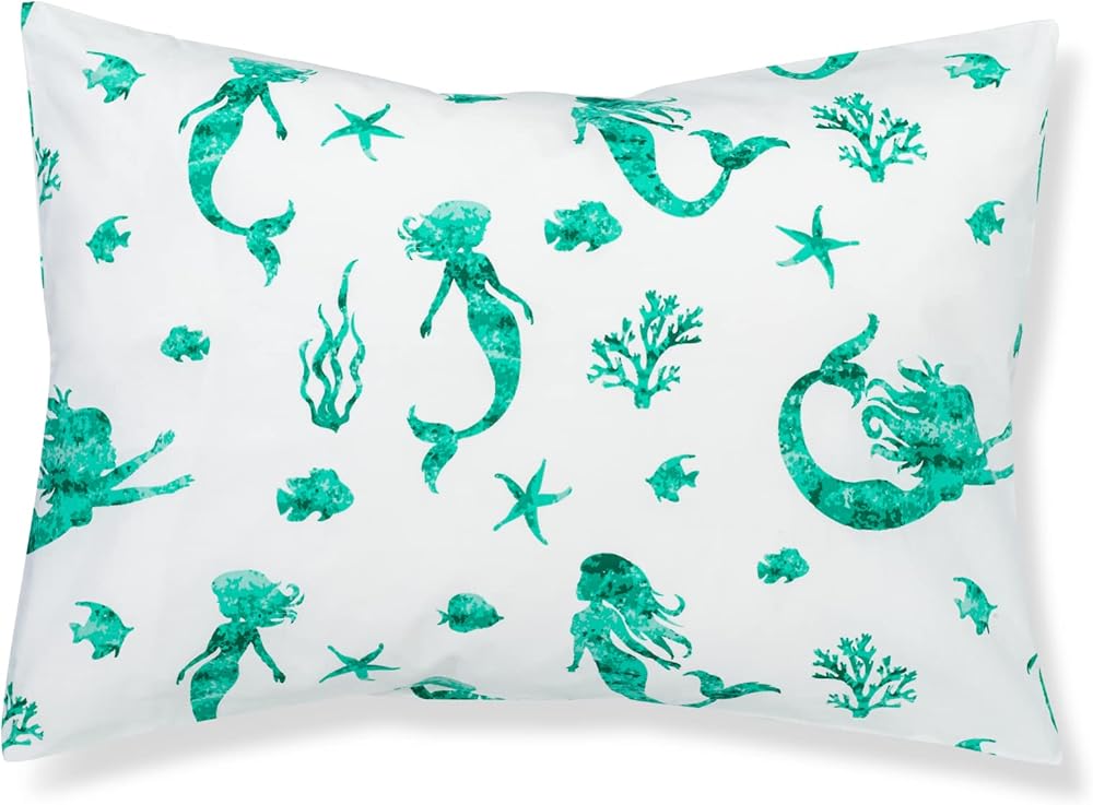 Addison Belle 100% Cotton Toddler Pillowcase 2 Pack - Alphabet+Mermaid - Fits Both 13"x18" and 14"x19" Pillows - Soft, Durable & Breathable