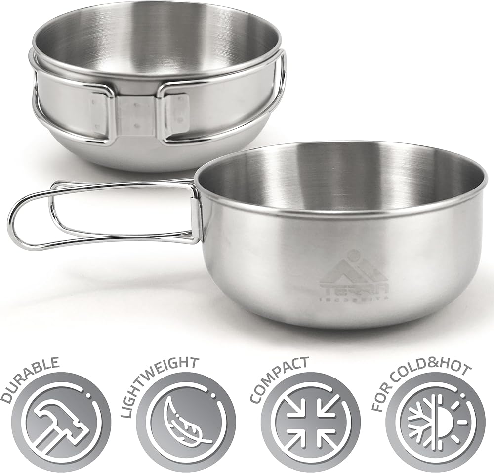 Searching for a camping pot, backpacking pot, backpacking cookware, lightweight camping pot, portable backpacking cookware, outdoor cooking gear, camping and hiking cookware, stainless steel pot for camping, or compact camping cookware? Look no further - the Terra Incognita Stainless Steel Bowl has got you covered! Get ready to cook up some outdoor magic.