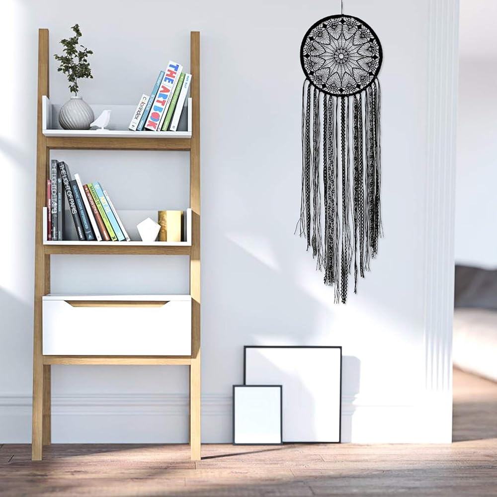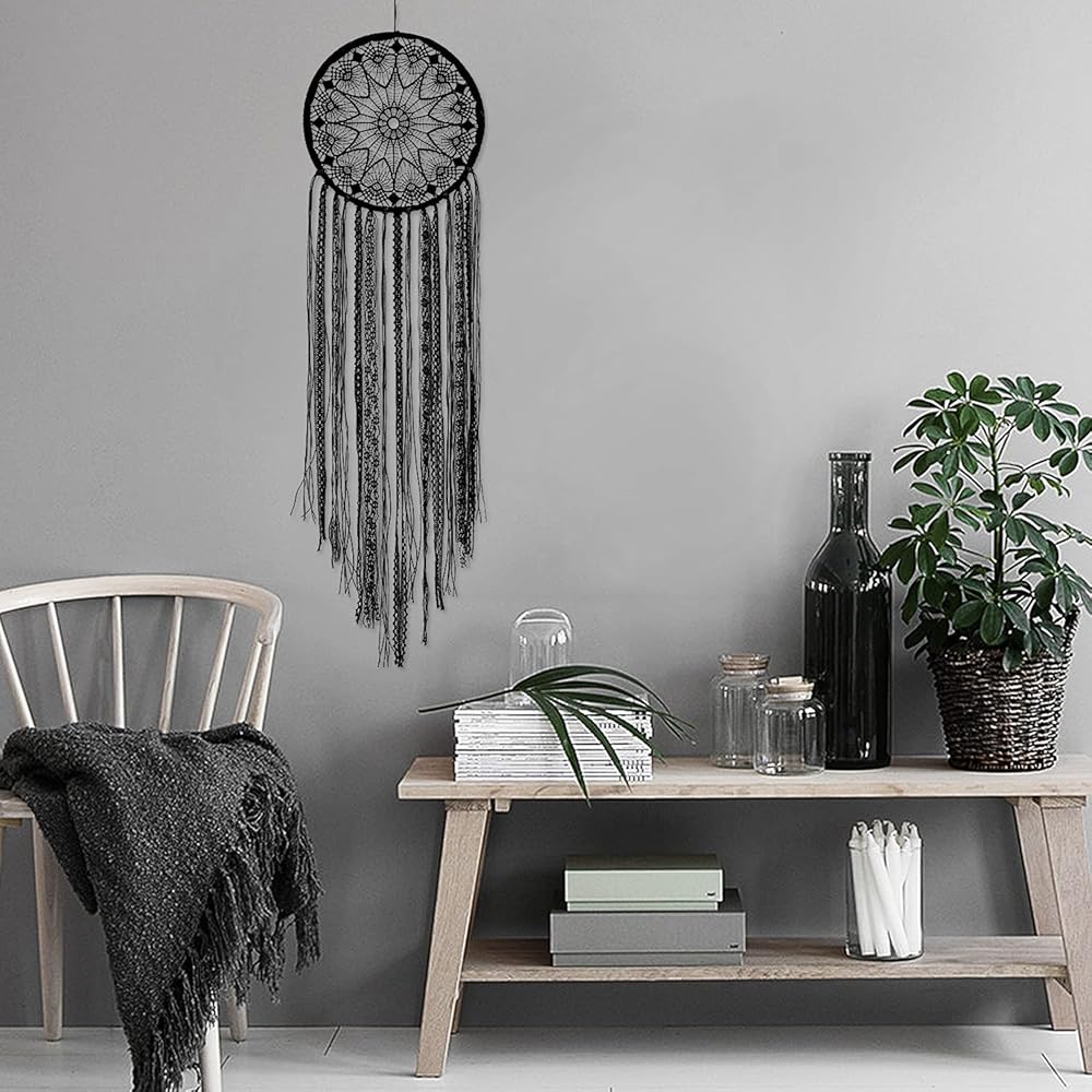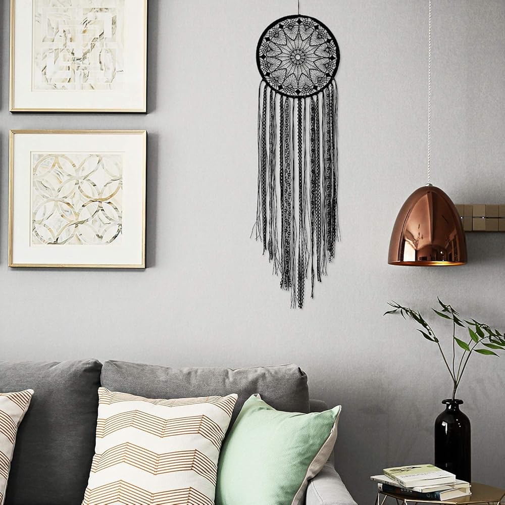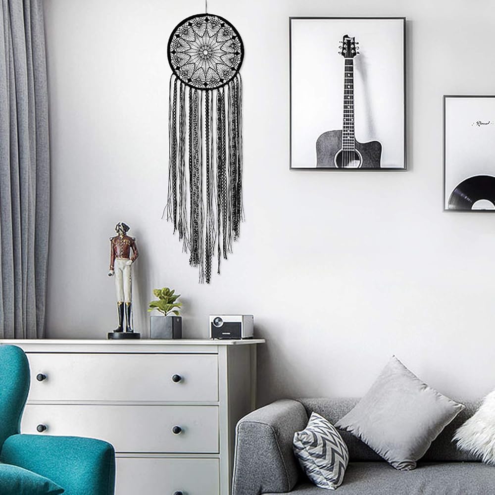 LOMOHOO Dream Catcher Big Black Dream Catchers for Kids Bedroom Handmade Lace Boho Wall Art Hanging Ornament Gift Living Room Dorm Decoration (black lace)