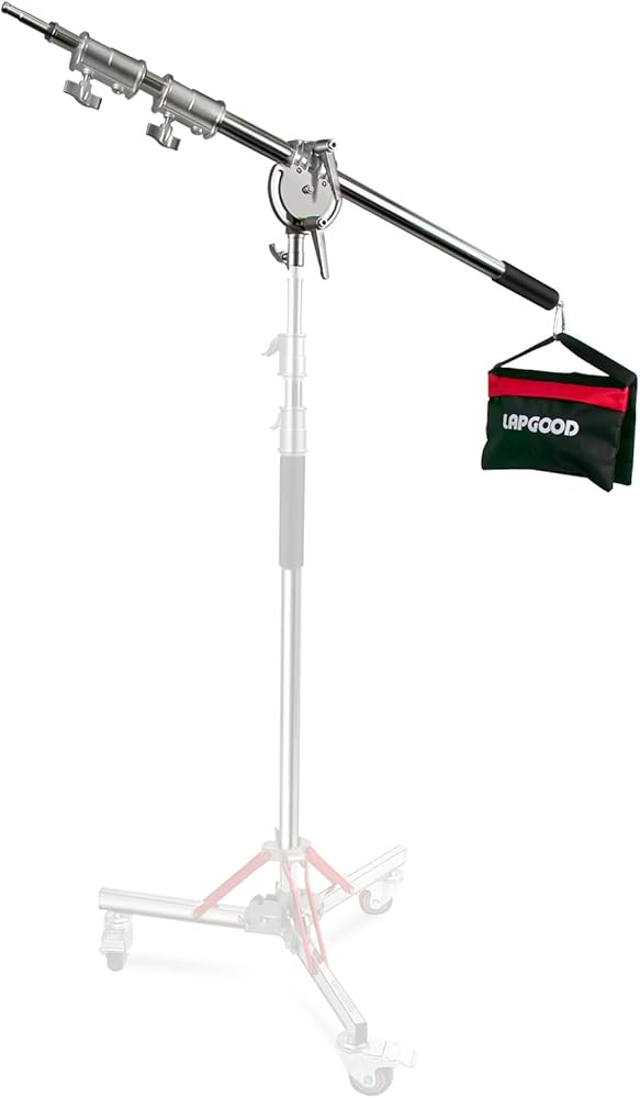 Lapgood 100% Stainless Steel Heavy Duty C Stand with Boom Arm - Max Height 10.8ft/330cm Photography Light Stand with 4.2ft/127cm Holding Arm, 2 Grip Head for Studio Monolight, Softbox, Reflector