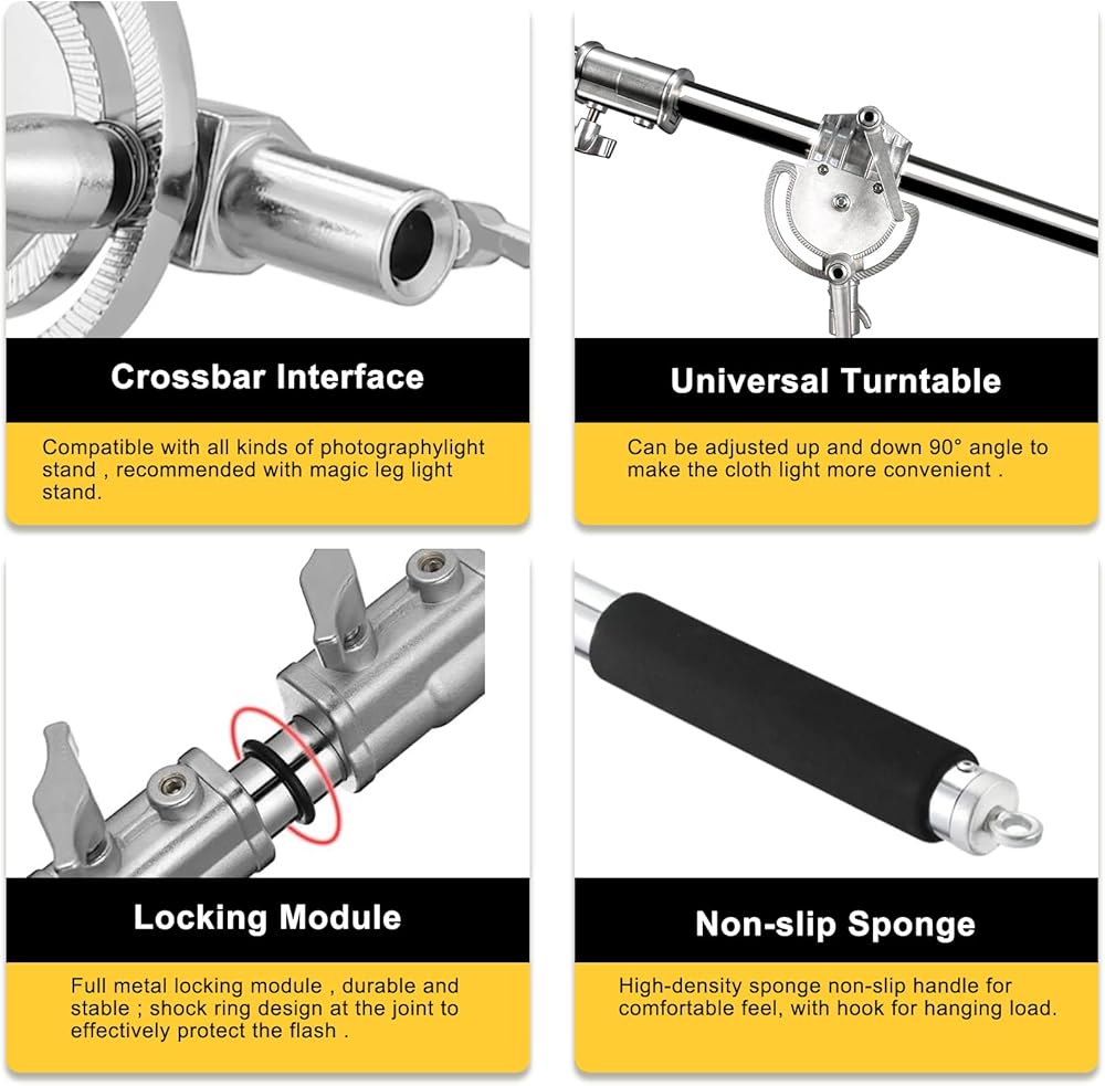 Heavy Duty Extension Boom Arm Bar C-Stand for Photography C Stand and Light Stand,Adjustable 37-91 Inch Crossbar Holding Arm with Sand Bag for Softbox,Studio Strobe,Monolight,LED Video Light,Reflector
