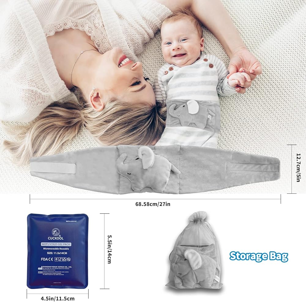 Baby Colic and Gas Relief, Heated Tummy Wrap for Newborns Belly Relief by Soothing Warmth, Baby Heating Pad Swaddling Belt Relief & Soothe Gas, Colic and Upset Stomach for Newborn to Toddler(Elephant)