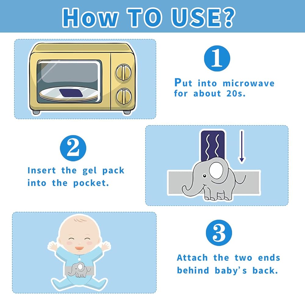 【Practical for Frequent and Multiple Uses】 The heated infant belly pouch provides soft and gentle compression to baby's upset tummy, the adjustable band is designed with velcro to fit different sizes of babies.
