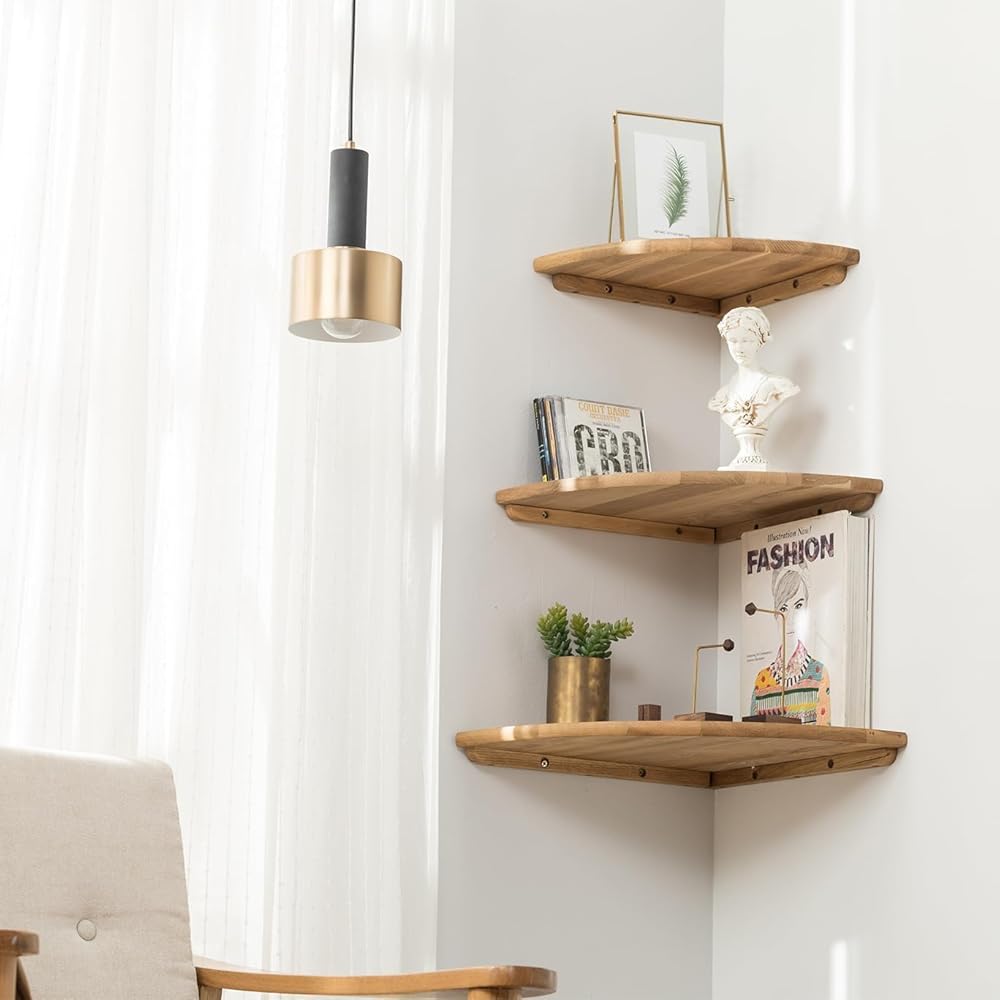 【🌱100% Oak Wood Corner Shelf】Unlike most other shelves made of MDF material and cheap processing, these shelves are made of 100% premium solid oak wood, Professionally crafted, painted with clear natural wood oil to protect from damage