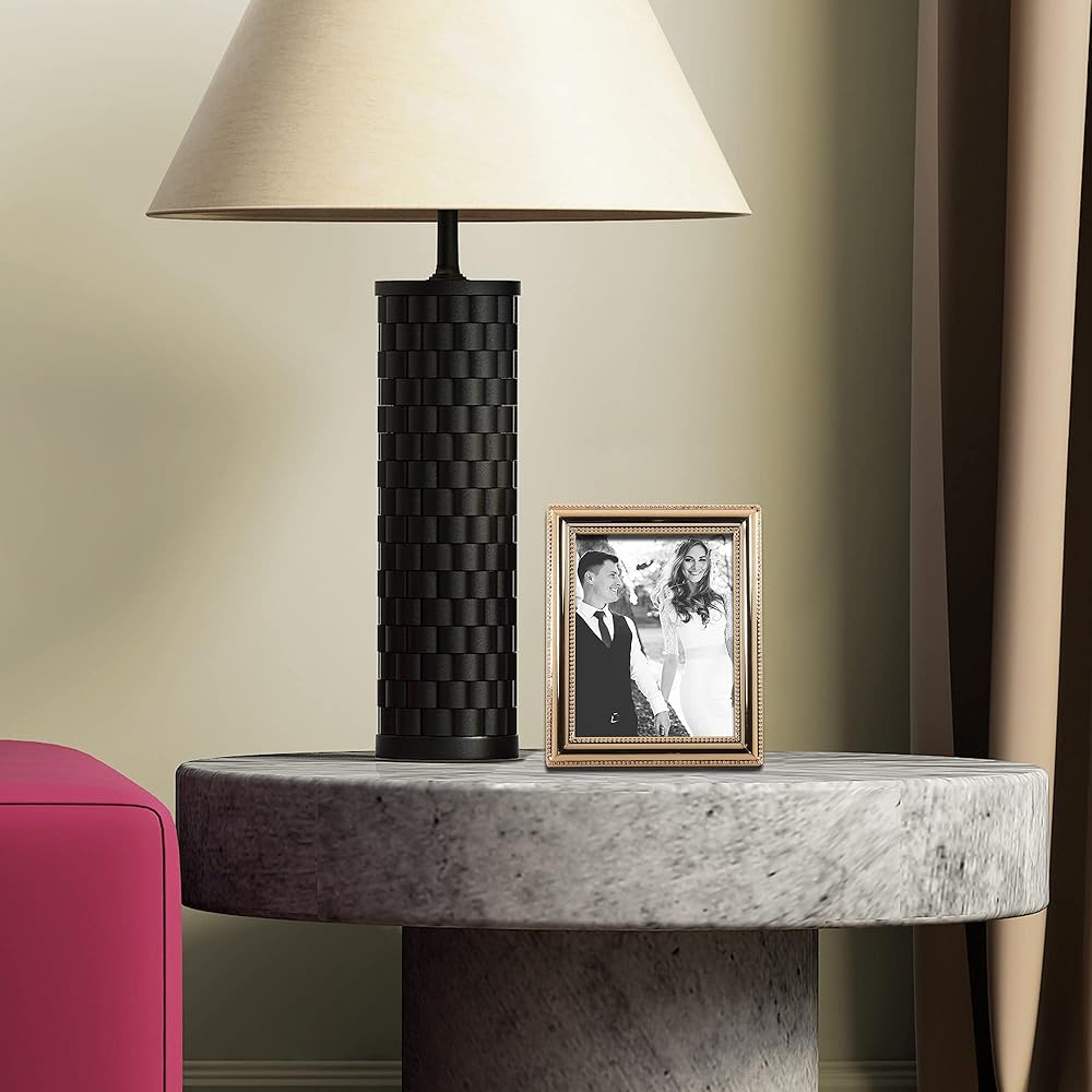 A classic silver plated frame with delicate caviar beading around the inside and outside edges. This silver plated and lacquer coated frame has a rich and lustrous silver finish. High quality navy blue velvet backing with an easel for vertical or horizontal table top display, and hangers for vertical or horizontal wall mounting. Heavy weight 4 by 6 metal picture frame is made with exceptional workmanship and comes individually boxed.