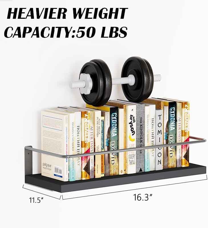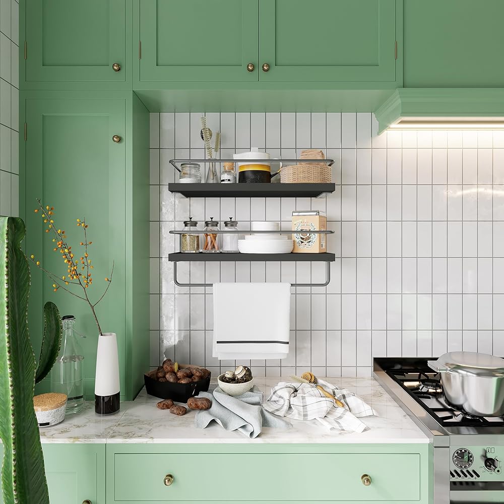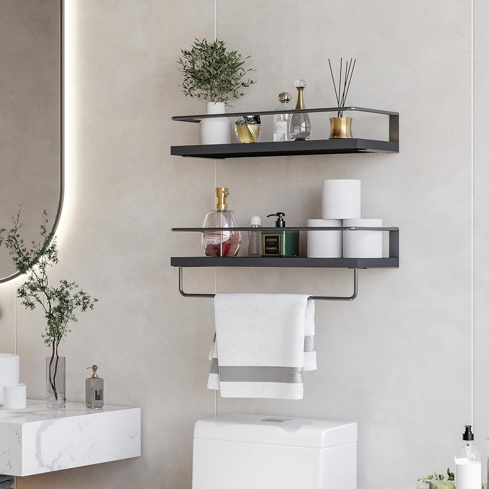 Onlysky Bathroom Floating Shelves Set of 2 with Towel bar (Black Black)