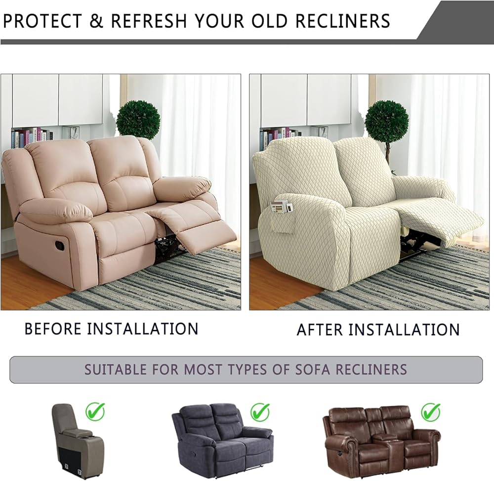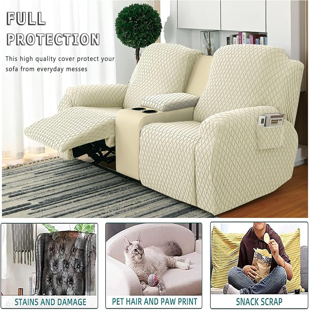 غطاء وحدة التحكم Loveseat Recliner يتضمن غطاء وحدة التحكم وغطاء مسند الذراع. مناسب لارتفاع 19-25 بوصة، عرض سفلي 11-16 بوصة، عرض جانبي 26-36 بوصة. للتأكد من الحصول على المقاس المثالي، يرجى قياس أثاثك قبل الطلب.