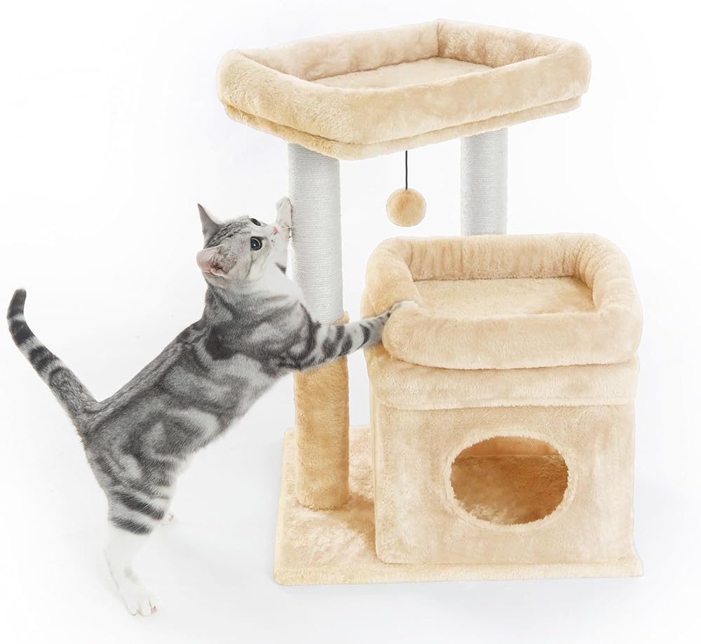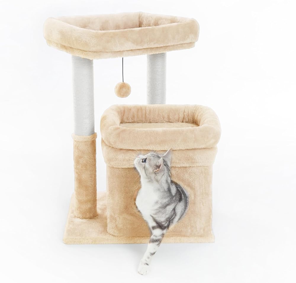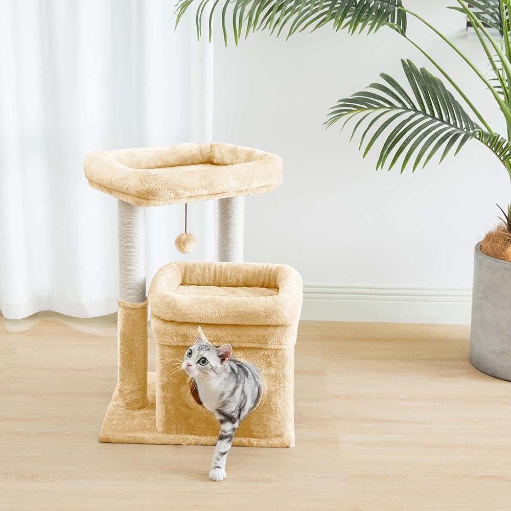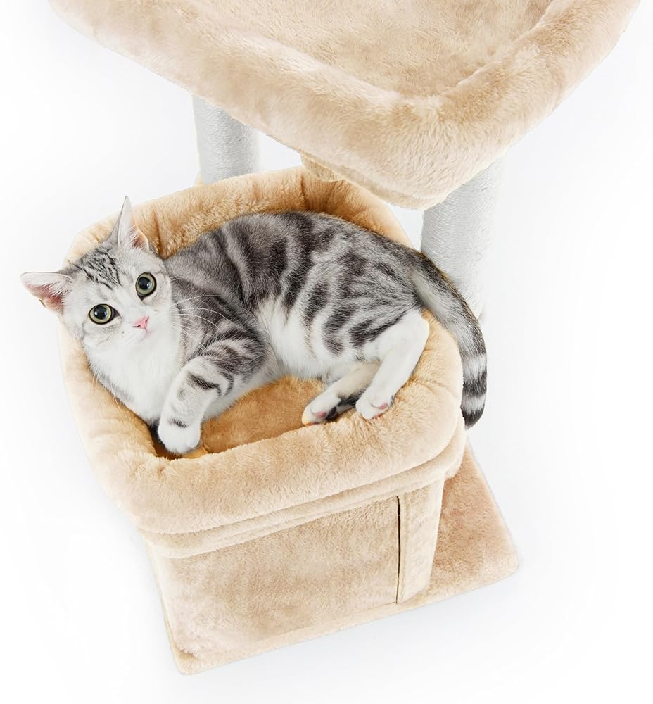 The Pesofer Cat Tree & Condo will have your kitty feeling like the king of their castle. It features a top perch platform so they can oversee their little kingdom, plus bolstered perch covers to cozy up against for impromptu cat naps. When your feline friend is ready for a scratch session, they can simply hop down to the partially wrapped sisal scratching post. The cozy condo makes the perfect zen den when your kitty prefers some privacy. It's the perfect size for apartment living or small homes and provides cats with the exercise and comfort they need. Now that's what we call comfy condo living!