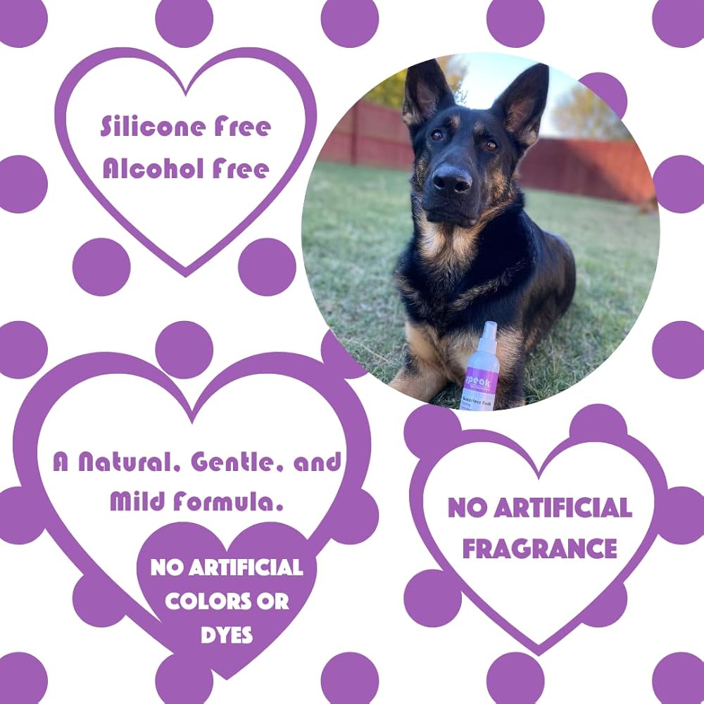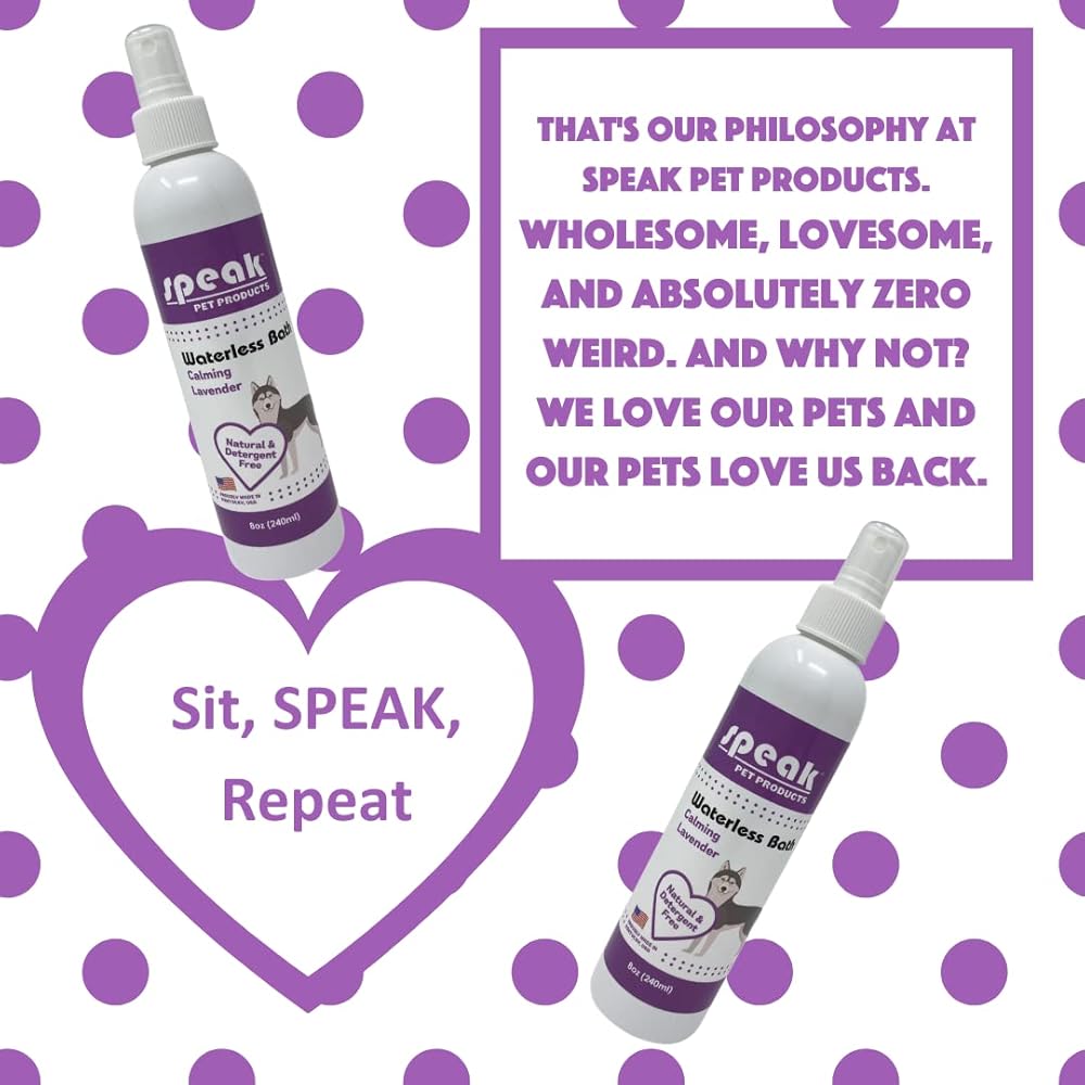 - Contains (1) 8 oz bottle of Speak Pet Products Moisturizing Coconut and Papaya Waterless Bath Spray