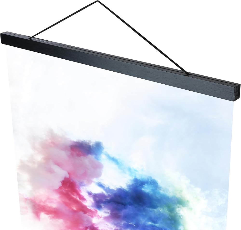 - 3Pack Picture Frame Hanger 12“ Wide Magnetic Poster Hanger Frame In Black Solid Wood