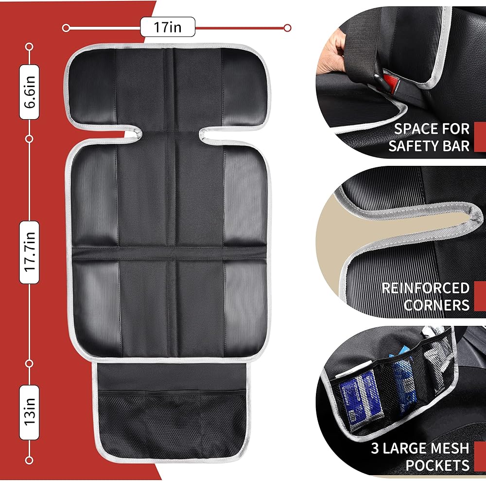 Car Seat Protector for Child Car Seat, Non-Slip Waterproof Car Seat Protector for Leather Seats with Thick Padding and Mesh Storage Pockets, Baby Seat Protectors Under Carseat