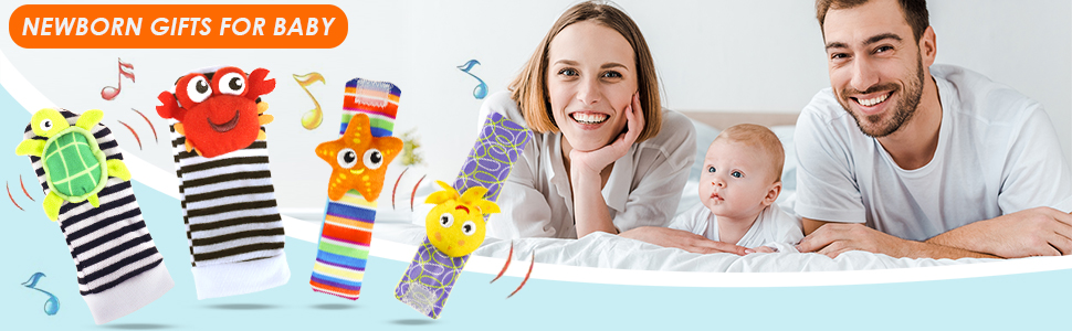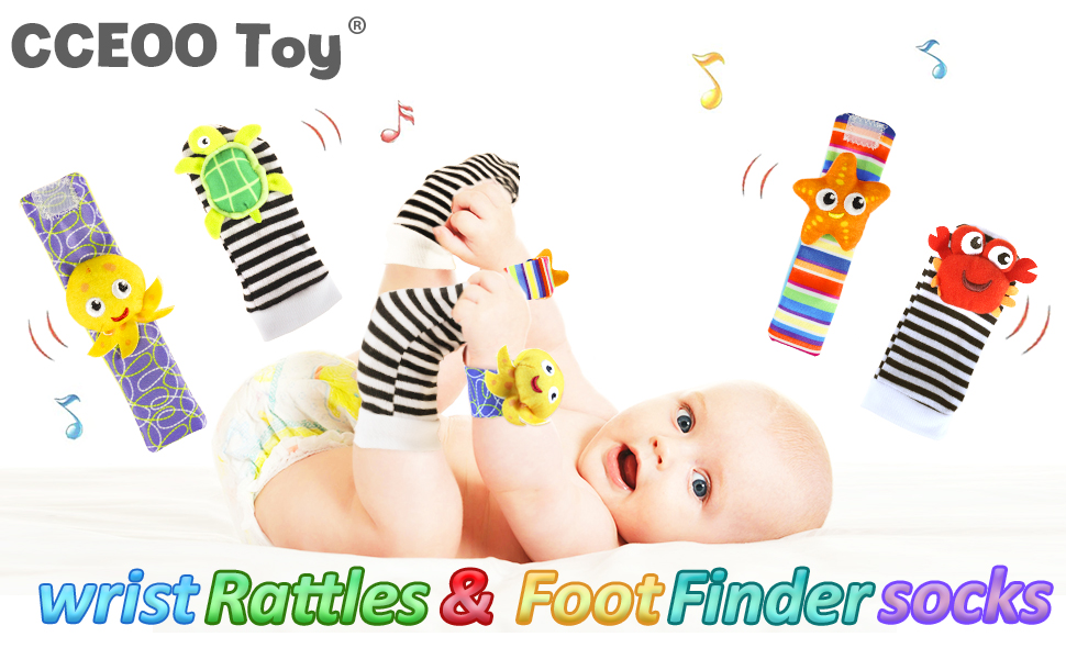 CCEOO TOY Baby Rattle Socks and Wrist Rattles Set 0-12 Months, Soft Sensory Toys for Newborn and Infant Development and Stimulation, Baby Gifts for Boys and Girls 3 6 12 Months