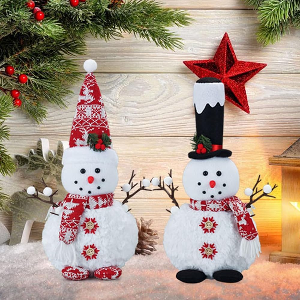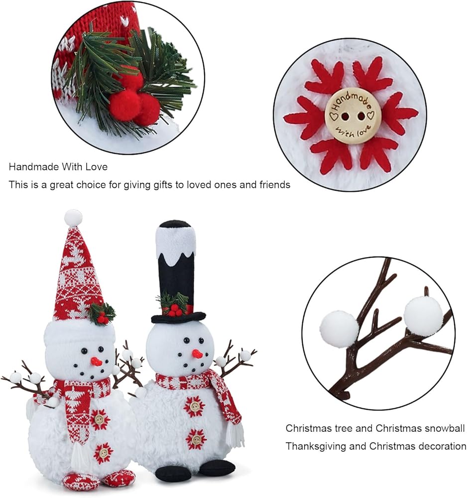 High Quality: Our snowman plush doll is made of premium fabric which is high-quality, durable, soft and safe. The surface is smooth and burr-free, makes the snowmen look delicate and beautiful.Very adorable, quality, substantially sized Christmas decorations for the house - it's a good win!
