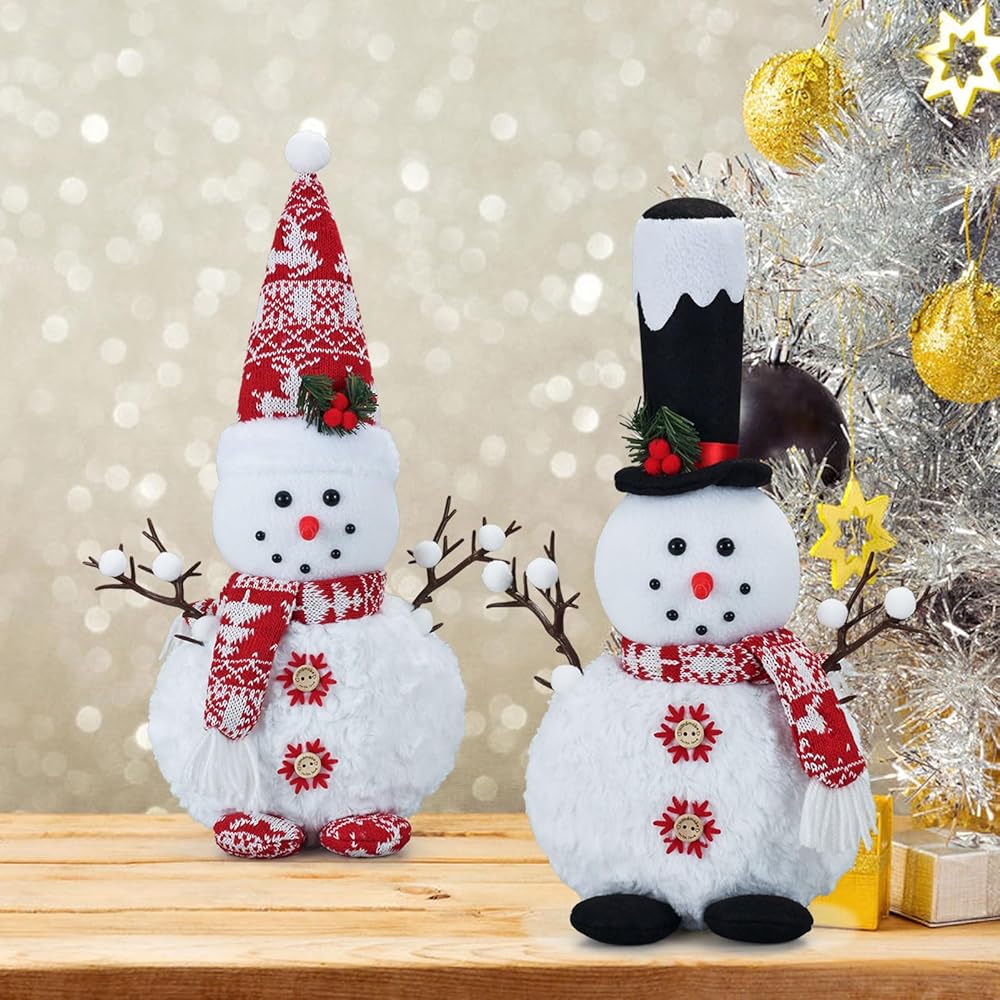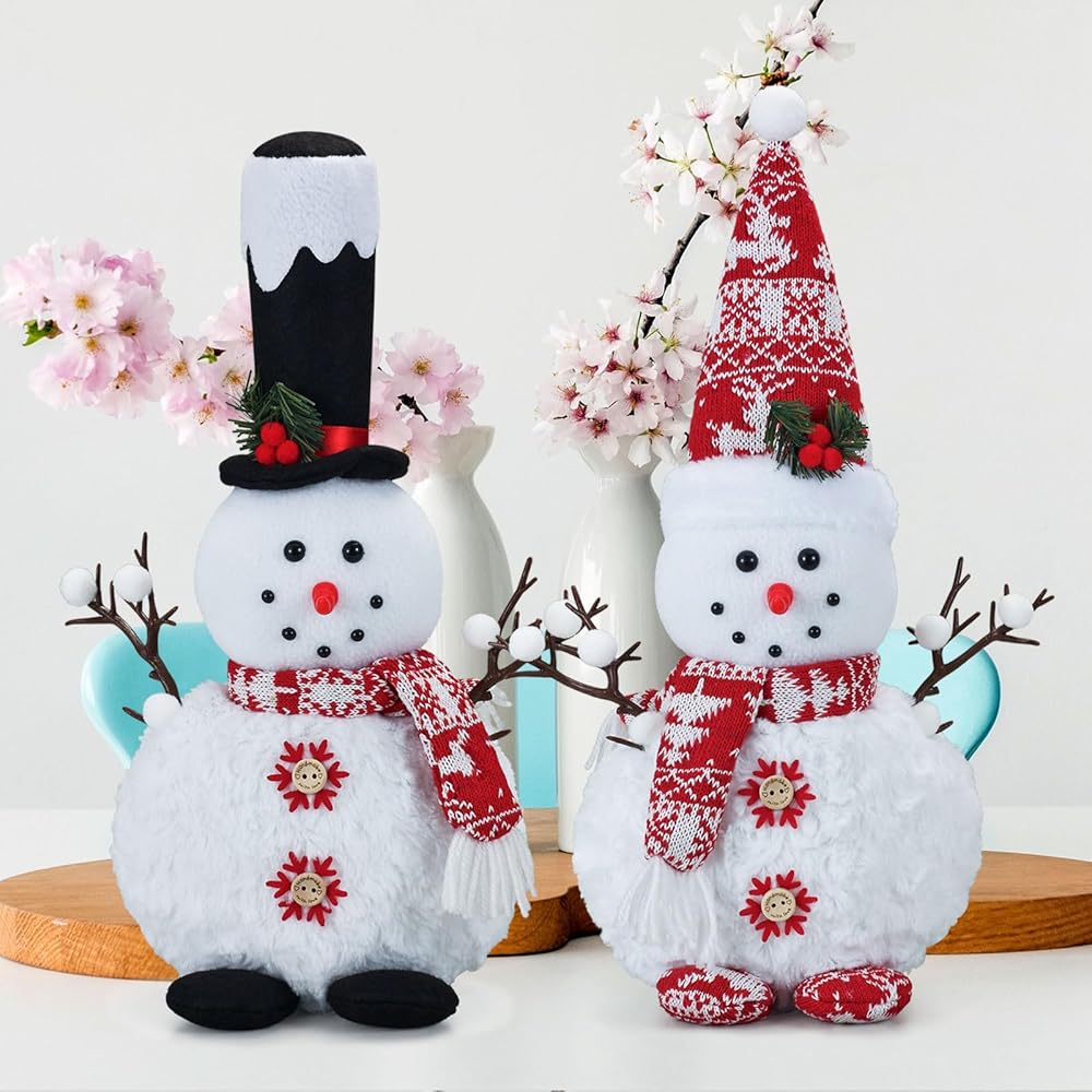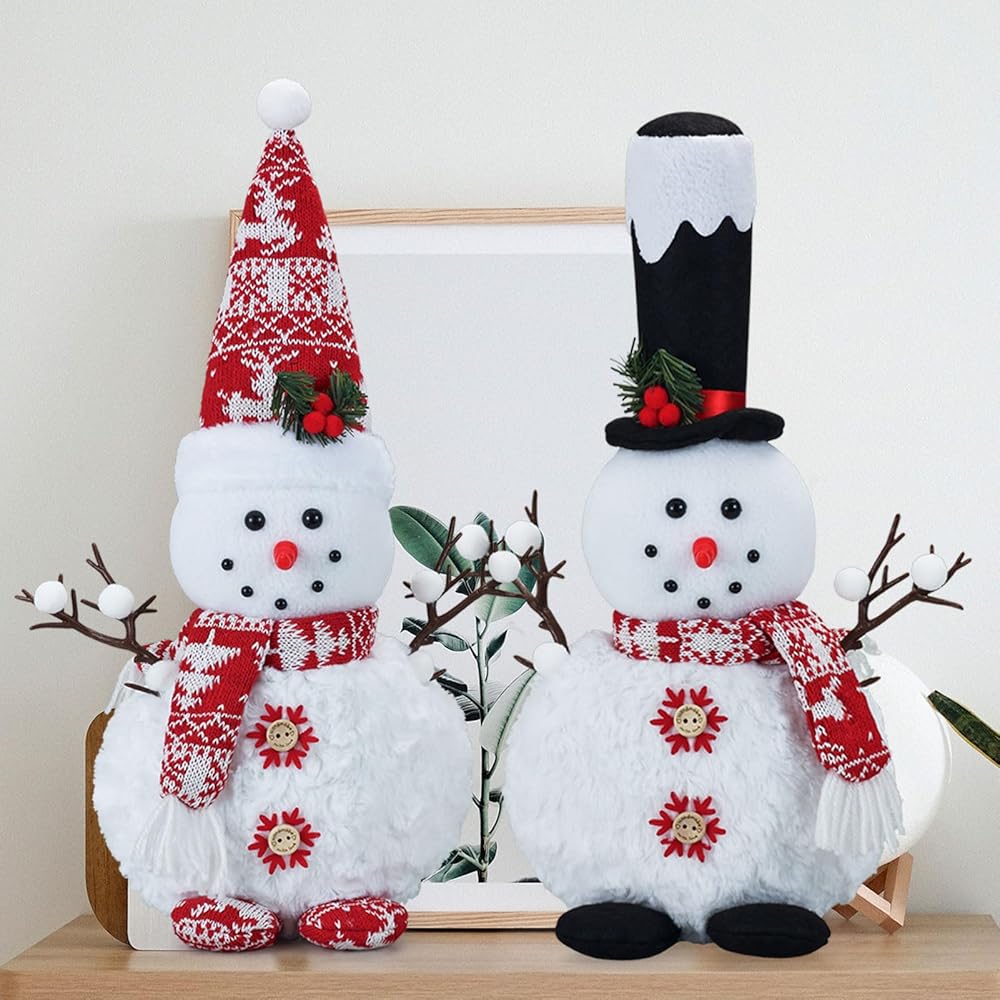 Set of 2 Gnome Plush 16inch Snowman Doll Tabletop Decorations, Big Size Farmhouse Rustic Snowman Ornaments for Home Bathroom Kitchen Table Indoor Xmas Birthday Party Winter Décor