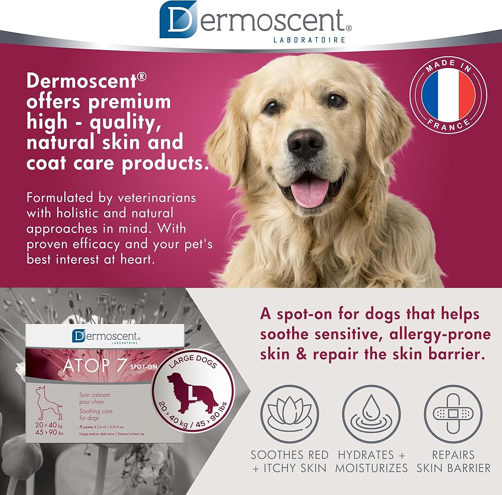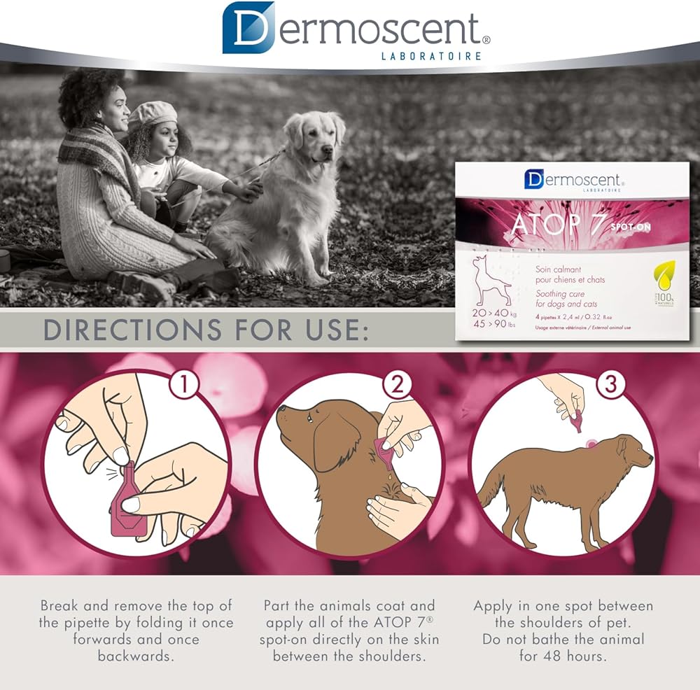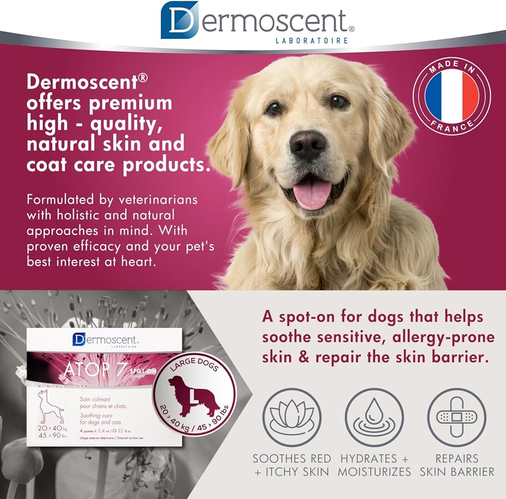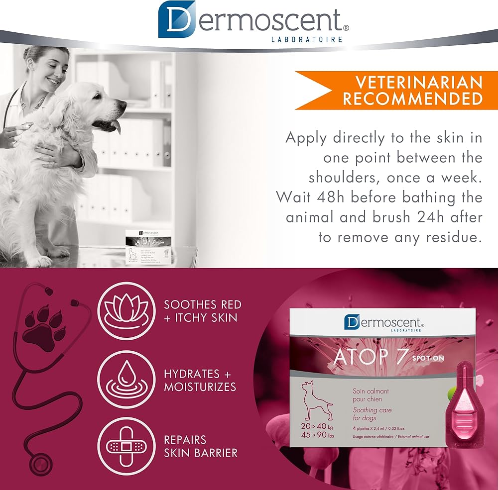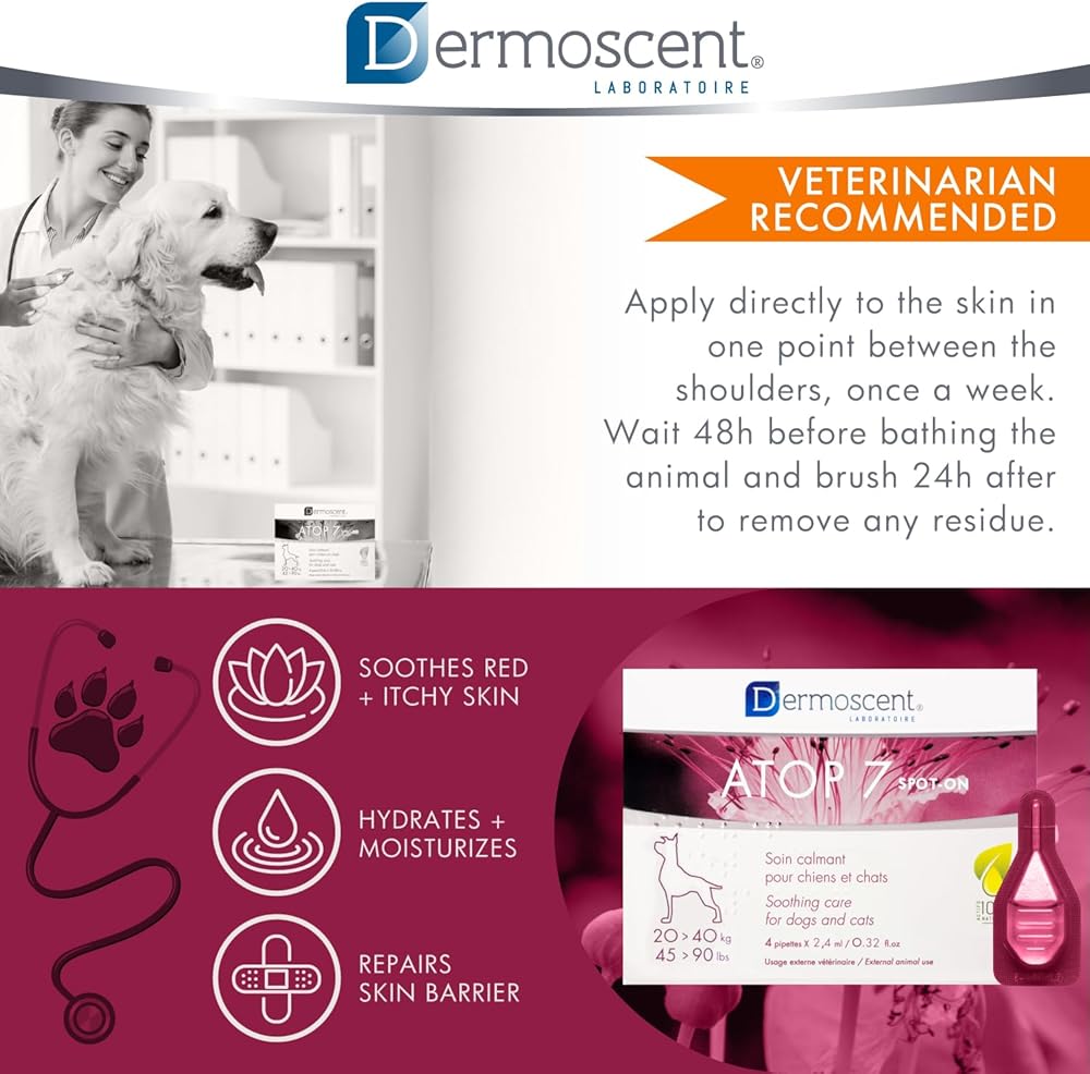 Dermoscent ATOP 7 spot-on - Medium Dogs 22-45 lbs - Soothing Care for Sensitive, Dry and Itchy Skin or Allergy Prone Skin - Natural Ingredients - 4 pipettes