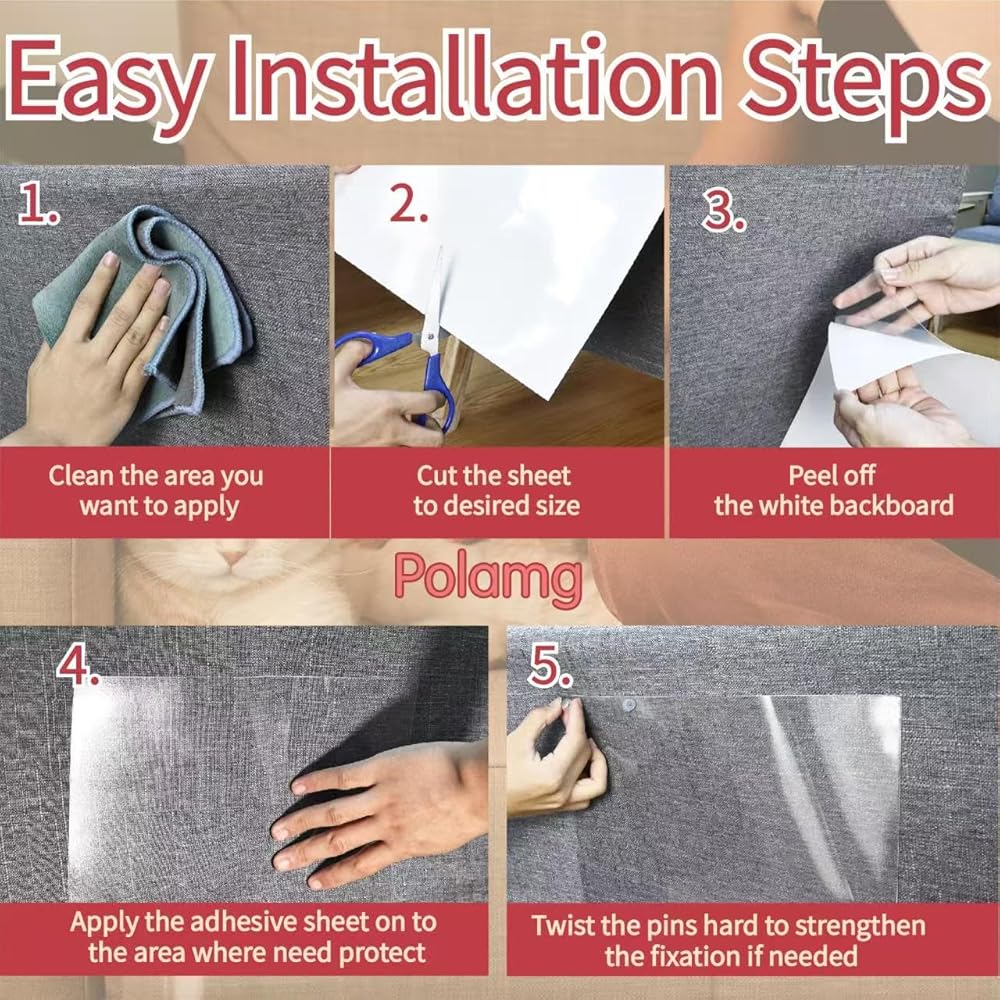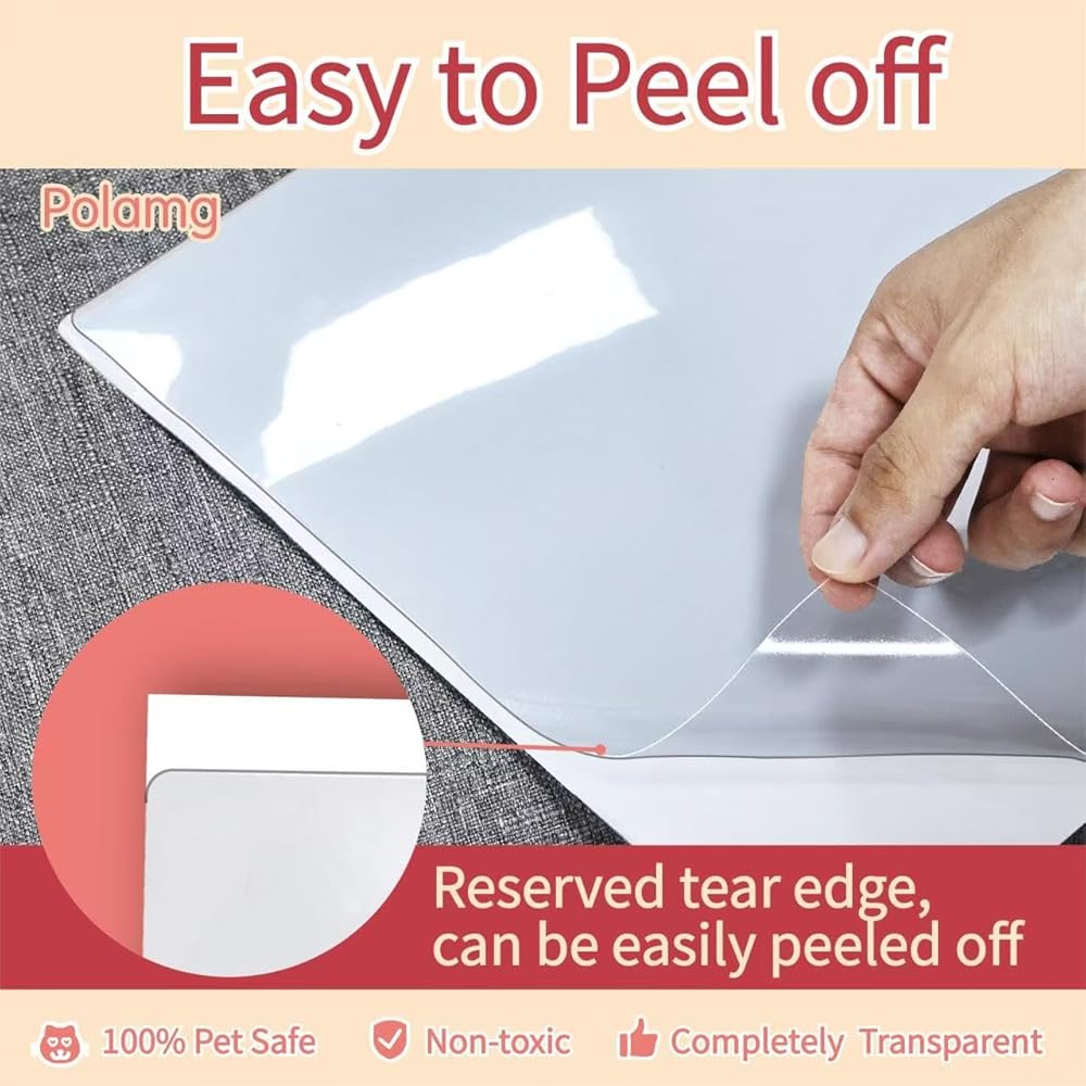 【Odorless & invisible armor】Made by non-toxic vinyl, these couch guards for cat has no weird chemistry smell and 100% safe to pet. Totally transparent after install to your couch.