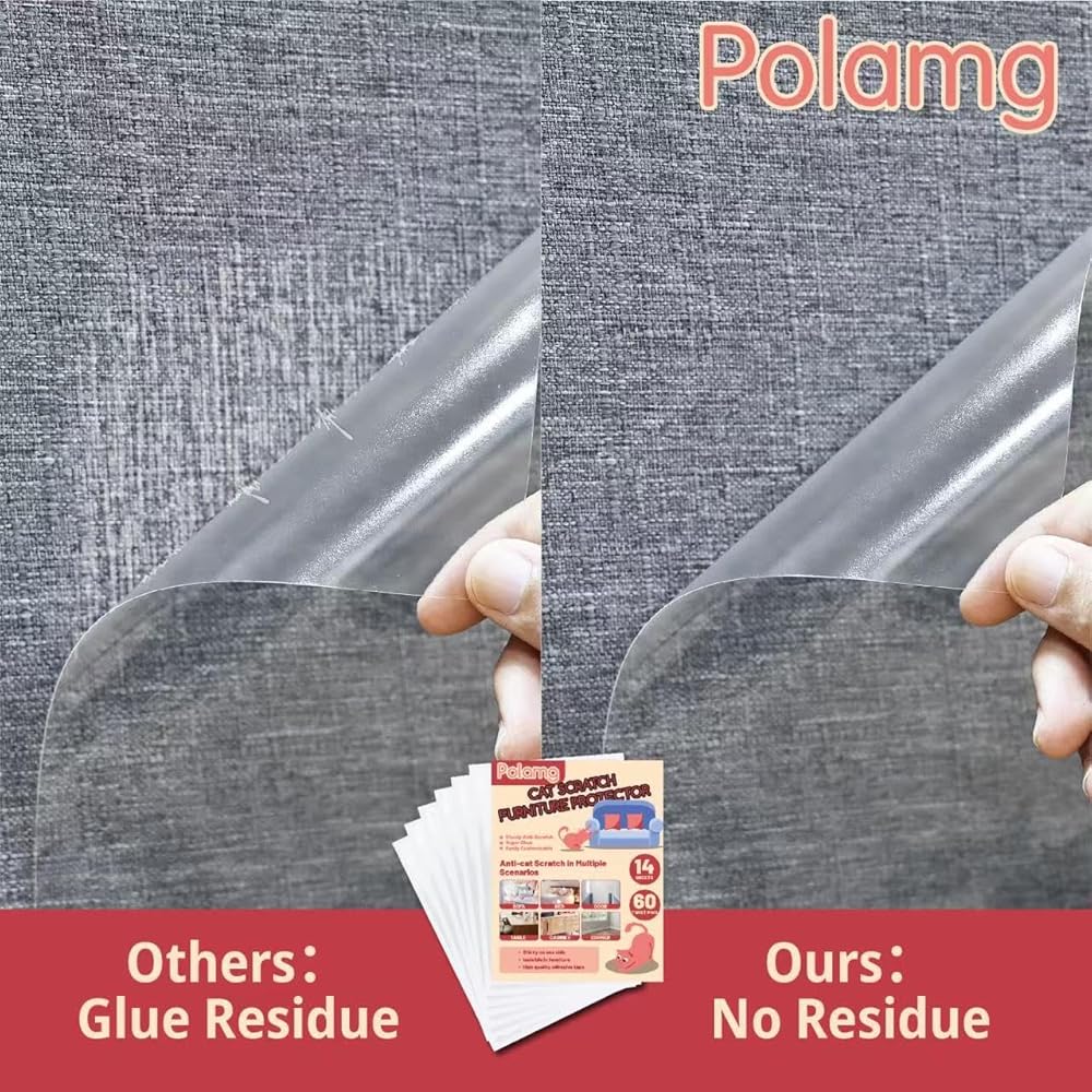 【Better glue】We improve the stickiness of these cat couch protectors, make it two times more sticky than competitors, and has no residue when uninstall.