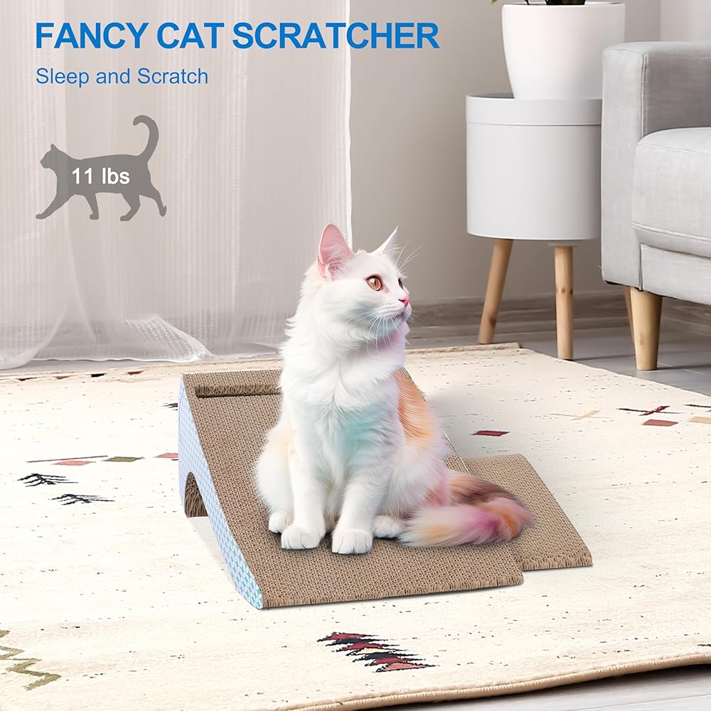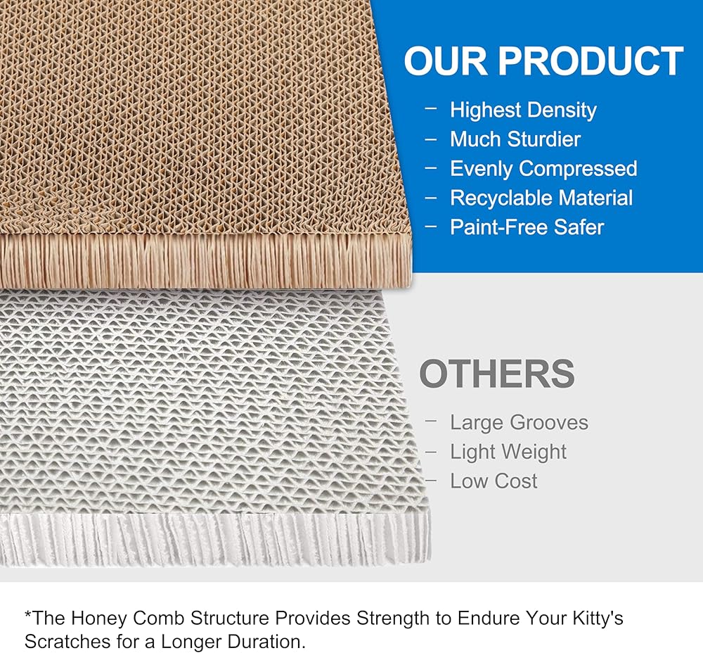durable and materials: our cat scratch board are made from recyclable corrugated cardboard. It contains a high-density five-layer corrugated paper that confirm durability and is therefore difficult to be torn by cats. All materials are tested using international safety standards. Unique design: Cat scratch cards boards with wave design lets the cat scratch and lounge on it comfortably. The attractive scratch board design blends easily with home décor and can be placed anywhere in the room. Tip: If your cat is not interested in the scratcher,some snacks and toys to guide them to the board.