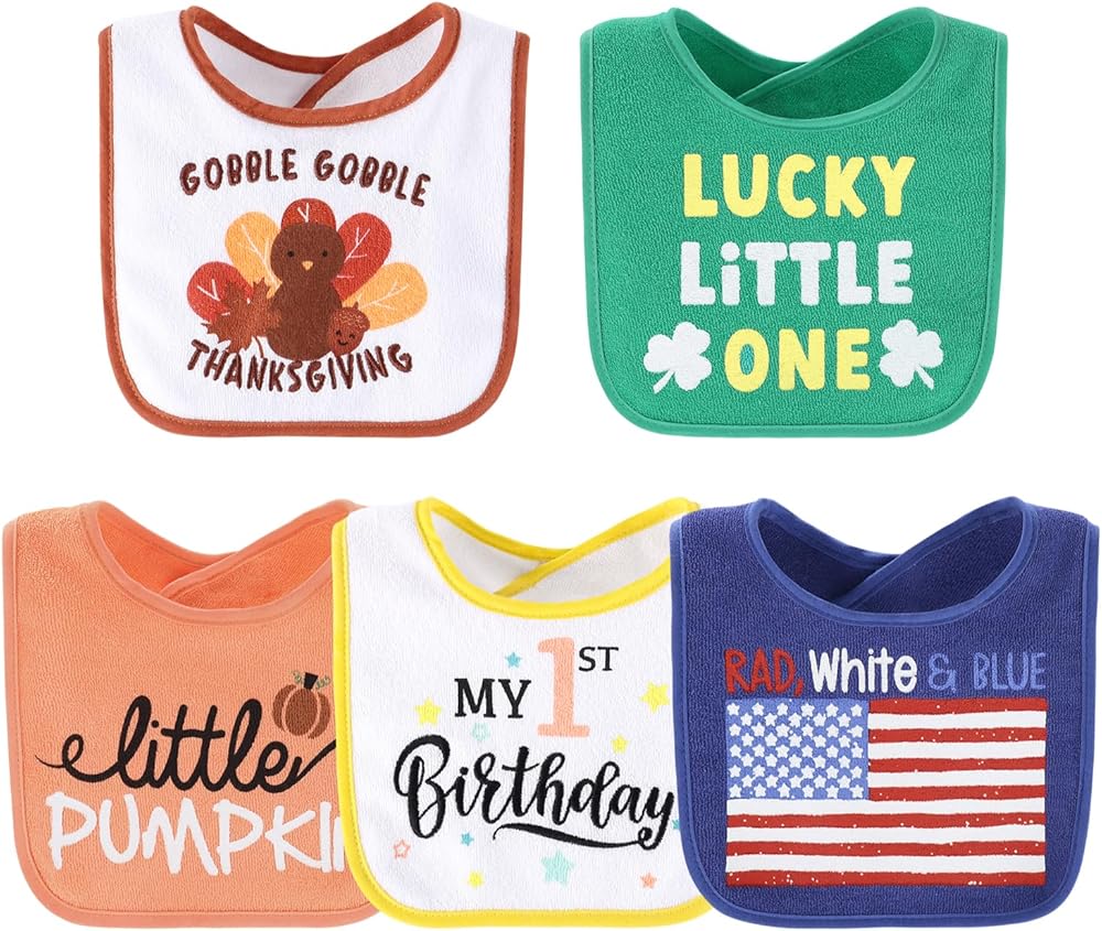 The Peanutshell Baby Boy or Girl Terry Bibs Set of 9-100% Cotton, Soft, Absorbent Baby Bibs for Boys and Girls, Unisex Toddler Set, Newborn & Infant - Holiday
