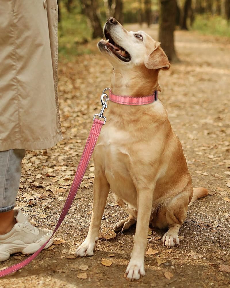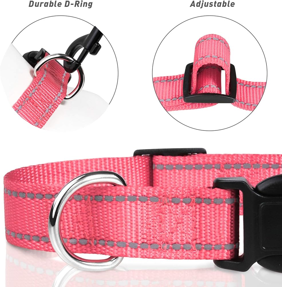 Premium Material: Our reflective dog collar is made of high density nylon, comfortable, pliable, lightweight and elegant. Nylon webbing joints are all treated with sewing to protect your dogs and hands are not easy to scratch during use