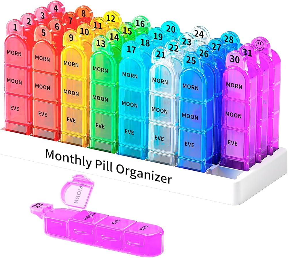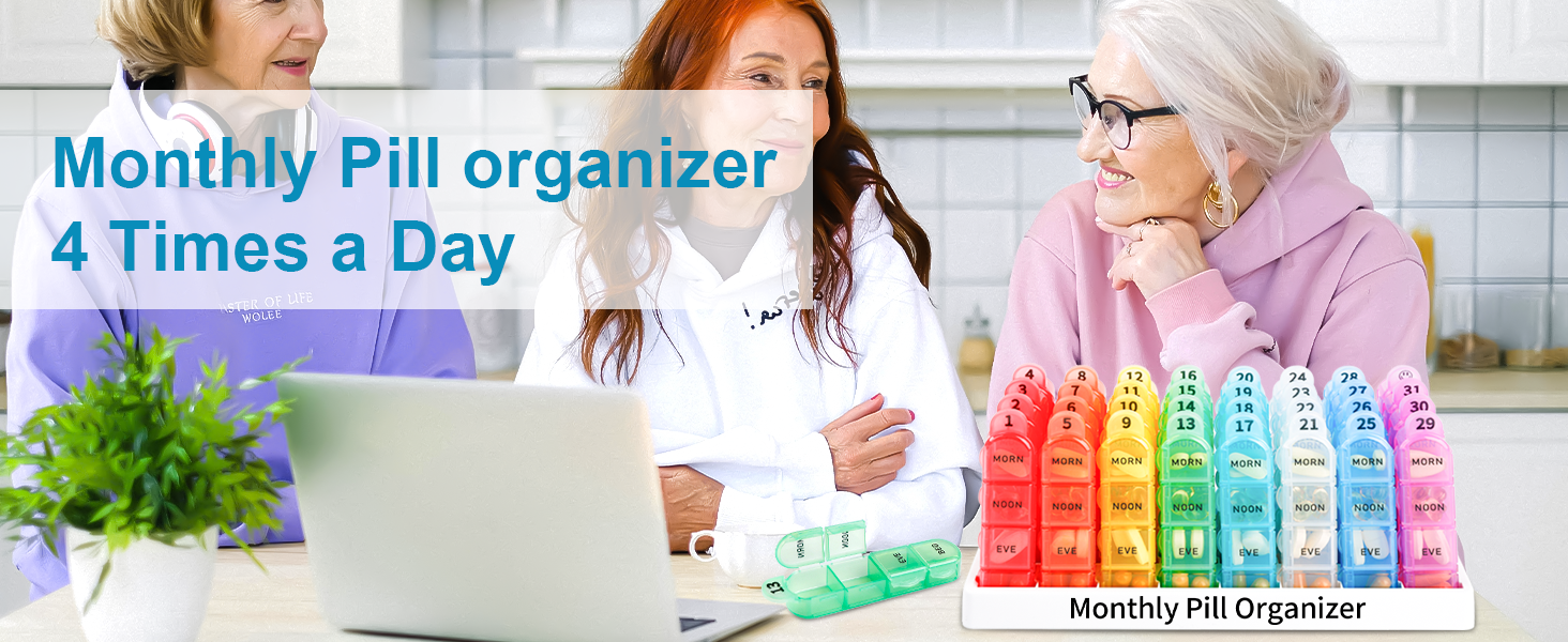 Zoksi Monthly Pill Organizer 4 Times a Day, 30 Day Pill Organizer, One Month Pill Box Organizer, 31 Day Pill Case with 32 Portable Daily Compartments, Medcine Container for Vitamins & Medications