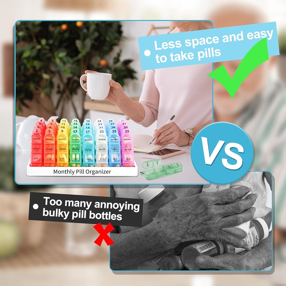 【Monthly Pill Organizer】Zoksi pill organizer monthly features 30 day pill organizer with 2 extra pill box. You can easily set up your medications for entire one month at once. This monthly pill organizer 4 times a day will help you manage your medications on your own and save your time.