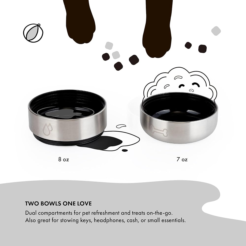 Two Detachable Bowls: Offering both dry & wet food for your convenience and your dog's delight. The bowls of this dog water bottle dispenser double up as a dog food travel container, offering a handy solution for meals on the go.