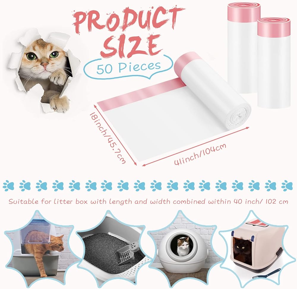 Cat litter garbage bags are suitable for pet owners to handle cat litter, and they are also nice as trash bags for kitchen, bathroom, as well as for outdoor camping, traveling and more.