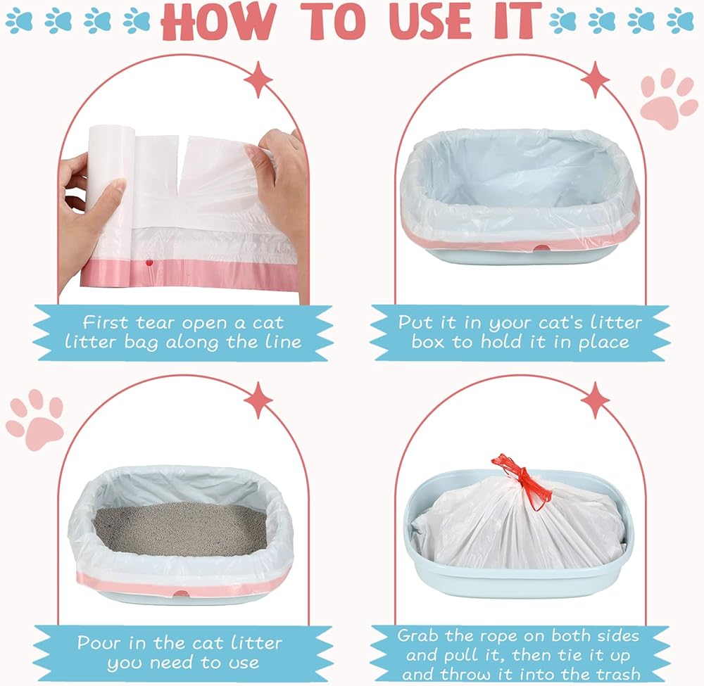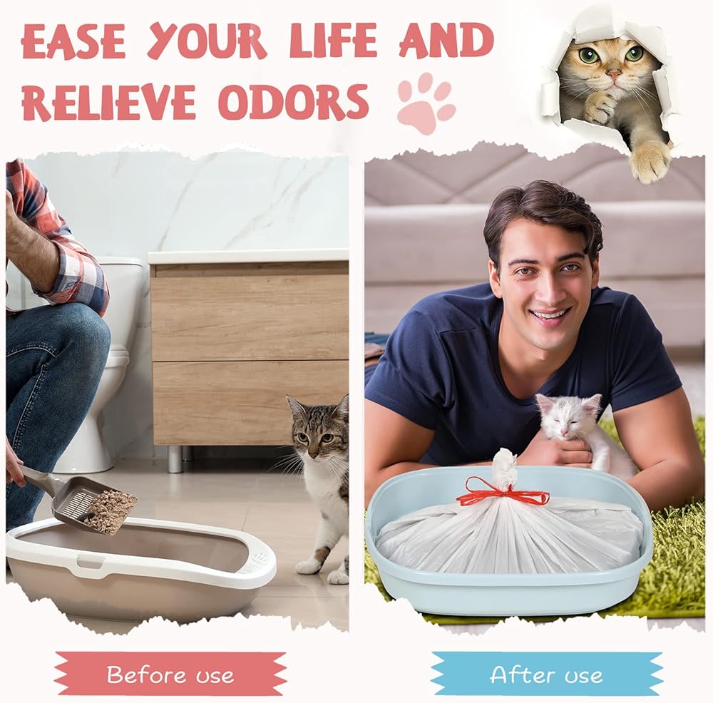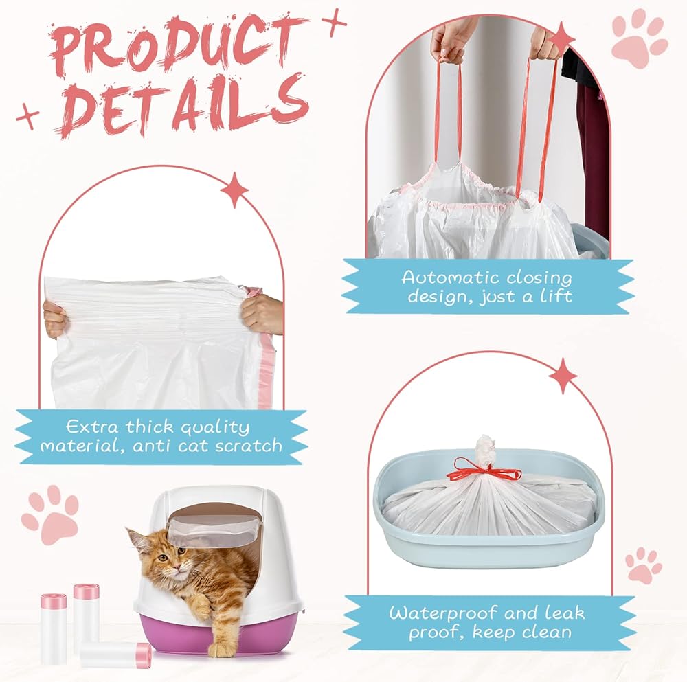 Cat litter box bags liners with drawstring handle make them easy for pet owners to clean, and adopt thickened design, so even if the cat is crawling on the cat litter, the claws will not easily scratch the bag.