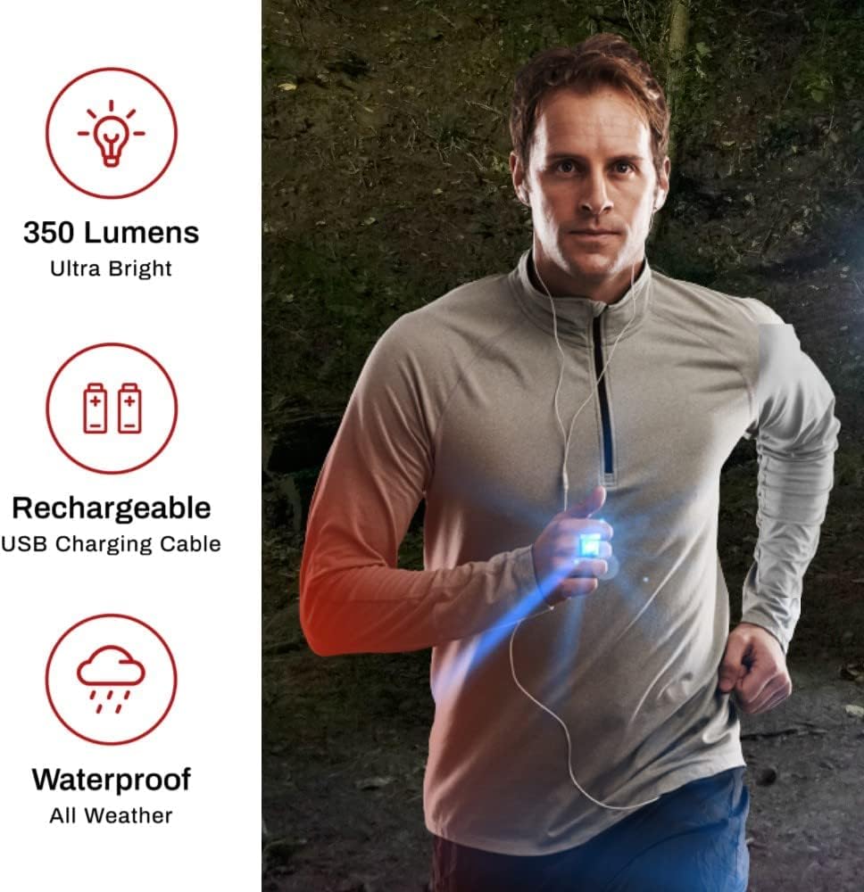 ULTRA-BRIGHT ILLUMINATION: Light-up your path with ease using Knuckle Lights ONE with an ultra-wide LED flood beam and a powerful 350 lumens. Runners lights for night safety ensure a well-lit path for joggers, walkers, hikers, and other nighttime outdoor activities. Enhance safety and visibility!