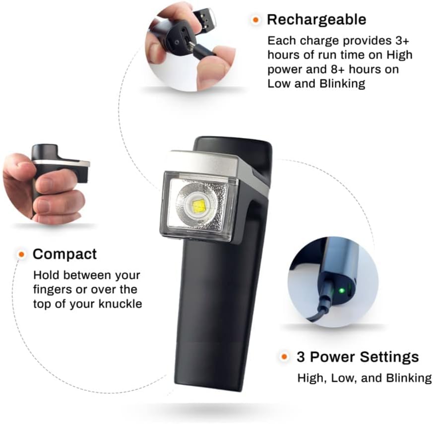 THE KNUCKLE LIGHTS ONE ADVANTAGE: Say goodbye to clunky headlamps, bulky vests, hat clips, chest lights, or shoe-mounted lights. Our running safety light offers the easiest solution for your night walking and running needs. Grab & go with running at night gear for safe and instant visibility.
