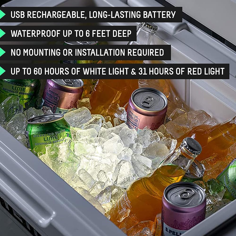 "Ever Needed a Cooler Light That Works Even When Submerged?"" Our cooler light is waterproof up to 6 feet and offers up to 48 hours of illumination even when submerged in ice water."