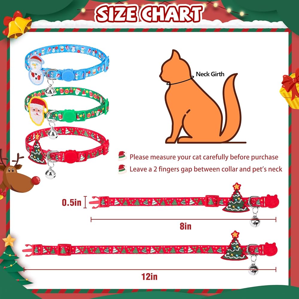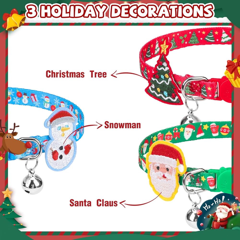 Christmas Style: 3-pack Cat Collar designed for Christmas. Selected Christmas tree, Santa Claus, and snowman elements, full of festive atmosphere, let your cat welcome the arrival of Christmas with you. The ideal Christmas gift for your cat.