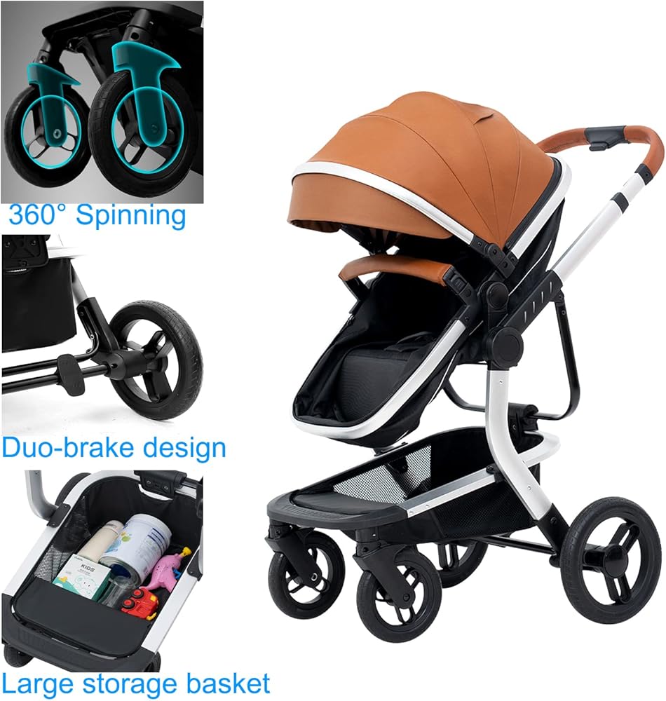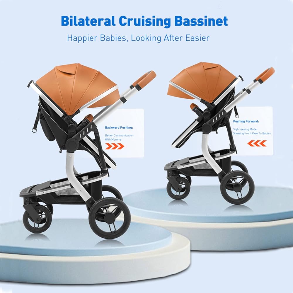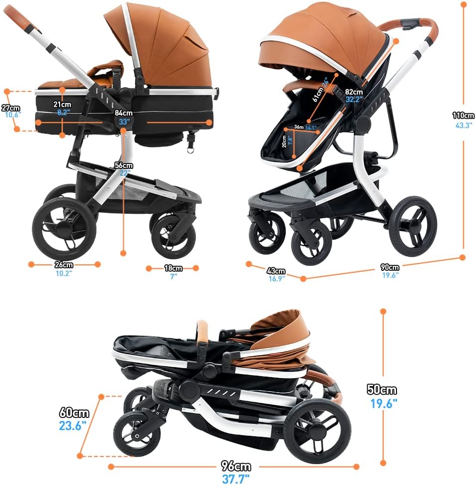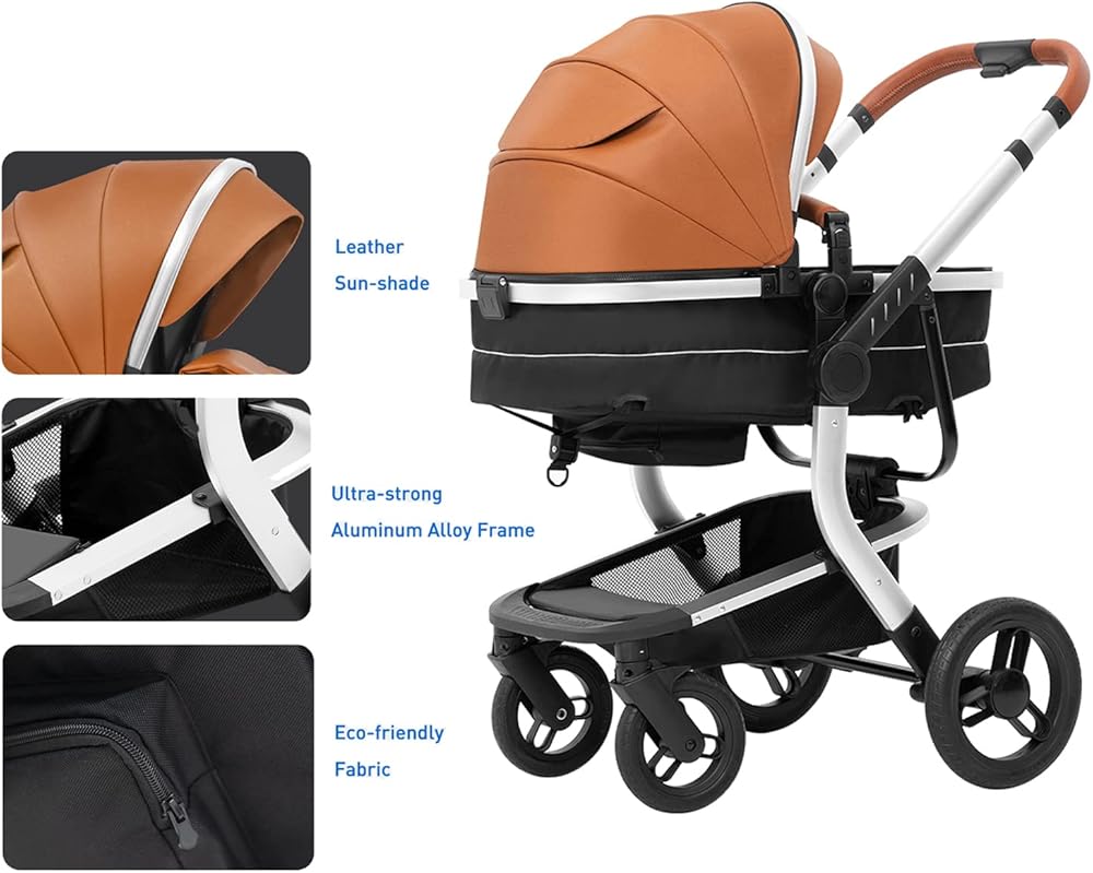 Material: The aluminum alloy frame is stable and smooth; PU leather handrail/handlebar and sunshade are easy to clean. the polyester fabric of the bassinet is breathable; Rubber non-inflatable tires bring silent cruising and convenient pushing.