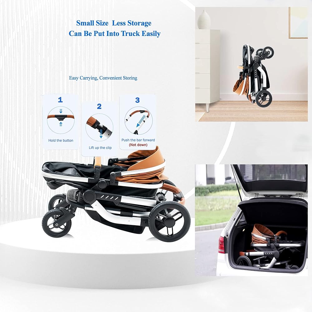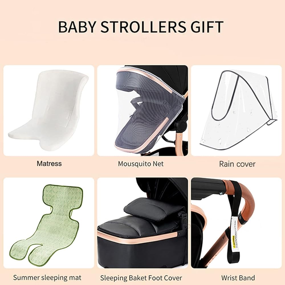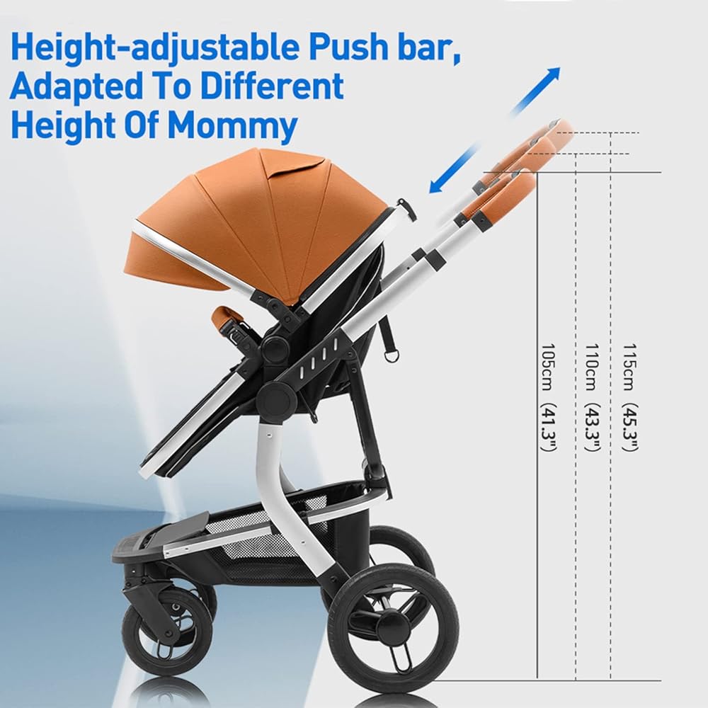 Material: The aluminum alloy frame is stable and smooth; PU leather handrail/handlebar and sunshade are easy to clean. the polyester fabric of the bassinet is breathable; Rubber non-inflatable tires bring silent cruising and convenient pushing.