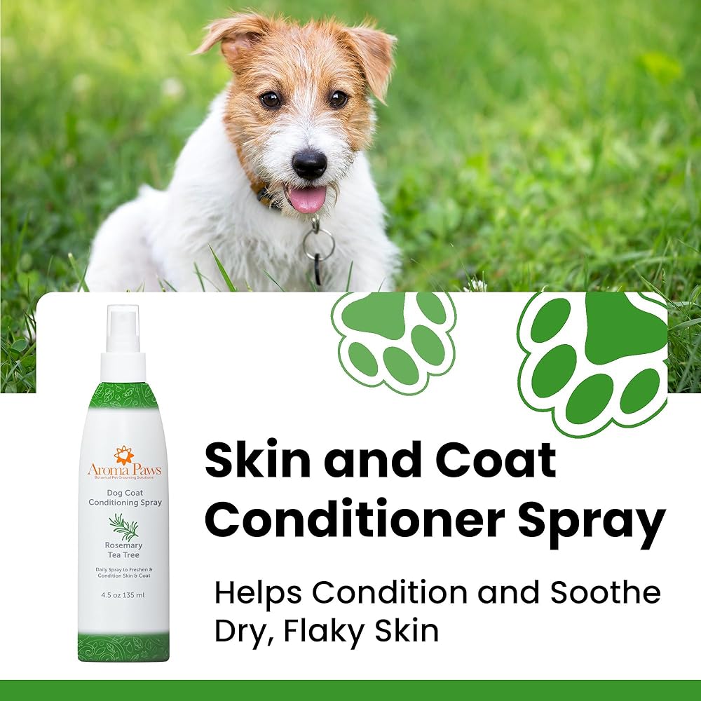 Skin and Coat Conditioner Spray: With coconut oil and papaya extract to condition skin, vanilla bean oil for stress relief, seagrass to purify the skin, and seaweed extract for anti-inflammatory