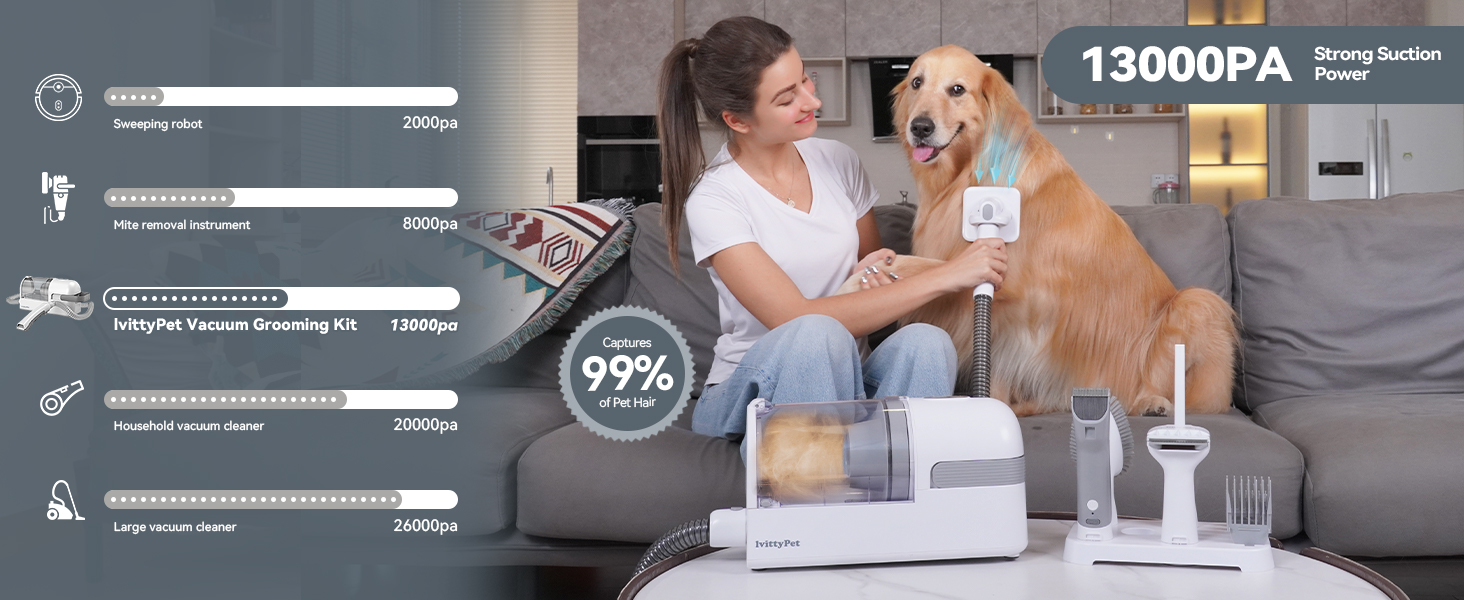 🐶【5 in 1 Pet Grooming Kit】lvittyPet pet grooming vacuum kit makes home grooming easy. It contains 5 pet grooming tools. The grooming brush and shedding tool gently remove loose hair, leaving your pet's coat shiny and smooth while eliminating tangles. The dog grooming clippers provide an excellent cut. In addition, our nozzle head and cleaning brush make it easy to pick up pet hair from carpets, couches, and floors.