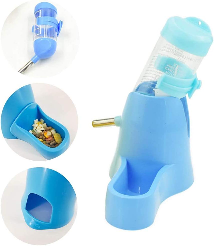 3 in 1 Hamster Hanging Water Bottle Small Animal Auto Dispenser with Stand Base for Hamster Rat Gerbil Mouse Chinchillas Squirrel Guinea Pig Ferret Rabbit Cage Toy (Blue)