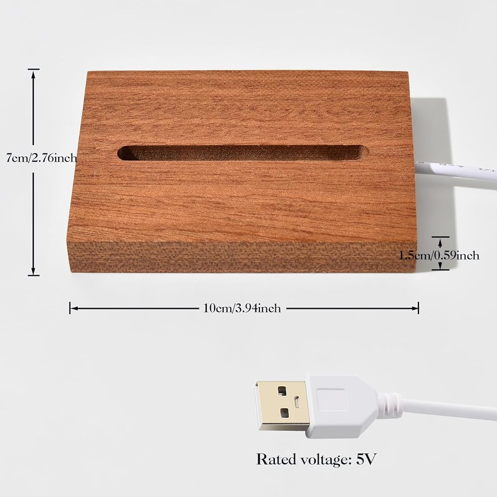 Uses & Size: It can be used for crystal, art glass, acrylic, 3D crystal statues, jewelry, resin and other items during Halloween Christmas Easter party. Wood light display base size: 10 x 7 x 1.5 cm/3.94x2.76x0.59 inches.