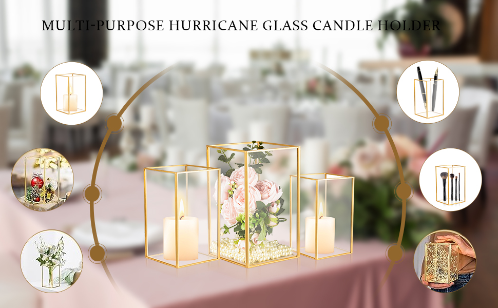 【Three Sizes Available 】The hurricane glass candle holder has 3 different sizes that can meet your different needs. S: 10*10*17cm/3.9*3.9*6.6inch, M: 12*12*20cm/4.7*4.7*7.8inch, L: 14*14*24cm/5.5*5.5*9.4inch. (Notice: Package include 3 glass candle holders, not include candles)
