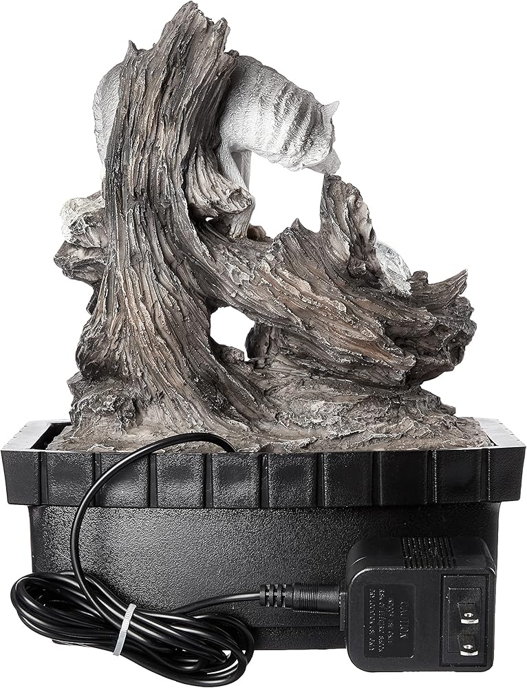 تتميز نافورة الطاولة الجميلة هذه بذئب رمادي يفتن بالماء المتدفق. يخلق إحساسًا ناعمًا ومهدئًا. تدور الكرة الشبيهة بالكريستال وتعكس إضاءة LED متغيرة اللون. تتدفق المياه من الكرة وأسفلها. مصنوعة من البوليريسين. لون السلك: 172.7 سم.