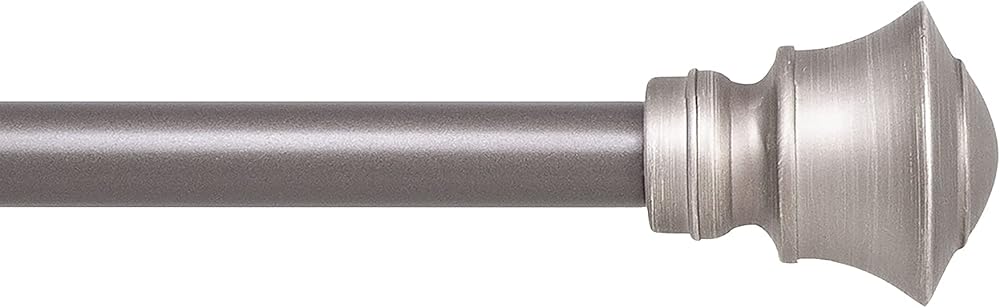 This elegant Interior Living Adjustable Petite Café Urn End Curtain Rod combines style with function and is the perfect accent to lightweight Café Curtains, Valances, or Tiers on smaller windows throughout the home. Whether your décor style is traditional, industrial, or modern, this café rod will accent your home perfectly. Featuring a sleek 1/2 inch diameter and trendy urn finial ends, this rod is ideal for the kitchen or bathroom. Customizable, this rod telescopes and adjusts to the perfect length. When mounted on a flush surface, the distance from the mounting surface to the inside of the curtain rod is 2.3 inches. Mounting hardware is included. Available in 28-48 and 48-86 inch lengths in Pewter finish.
