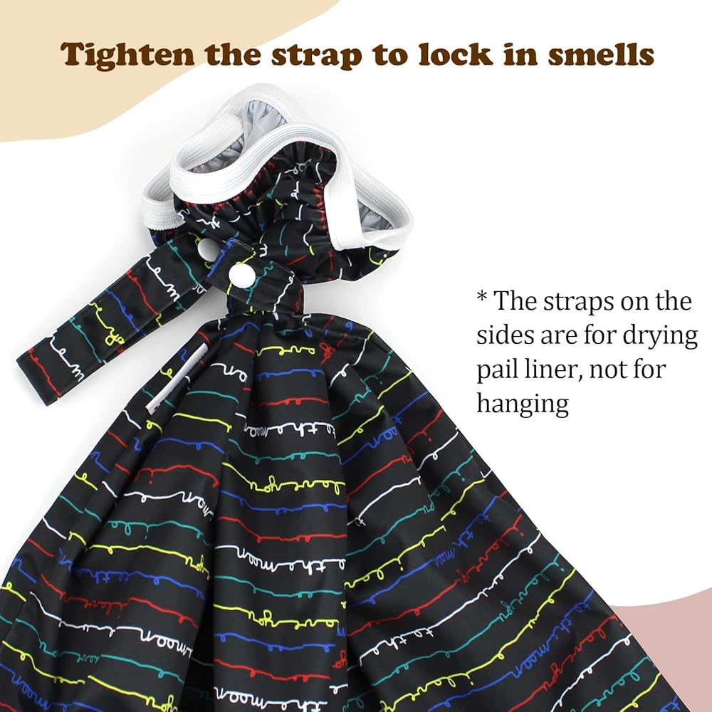 QUALITY MATERIAL & STRAP - Our Cloth Diaper Pail Liner has a secure fit with a tight strap enclosure that locks in odors and keeps them from escaping. The liner is made of high-quality waterproof TPU that prevents leaks and smells from escaping, so you can have a clean and odor-free home.