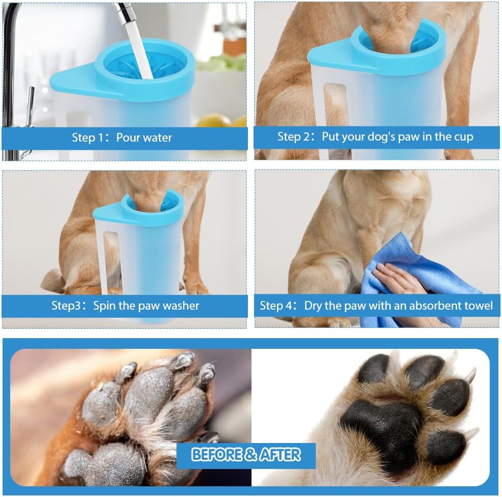 🐾Easy To Use - Add a little water, put in muddy paws, twist the cup and dry the paws. Repeat and soon your furry baby won't be bringing dirt from his feet indoors.