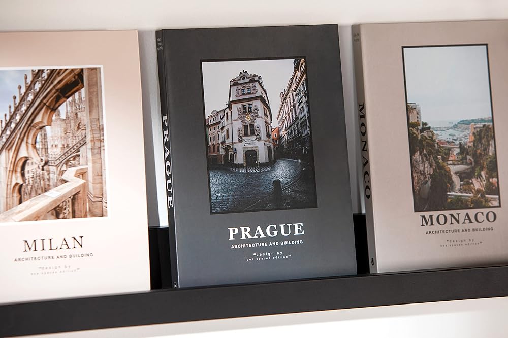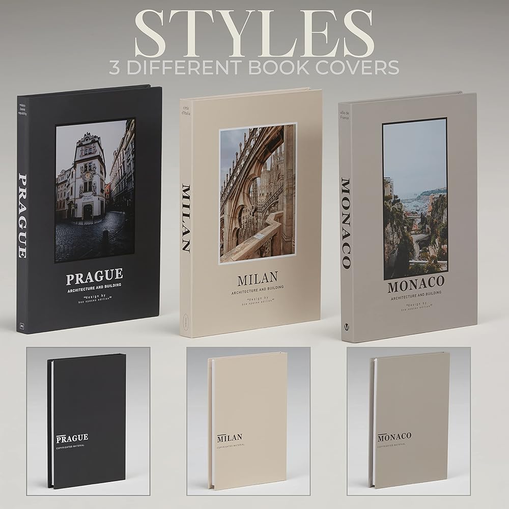 Design – These decor books for shelves can fit in a neutral decor and a grey living room decor. You will get 3 decorative books with each a unique cover of Prague, Milan and Monaco.