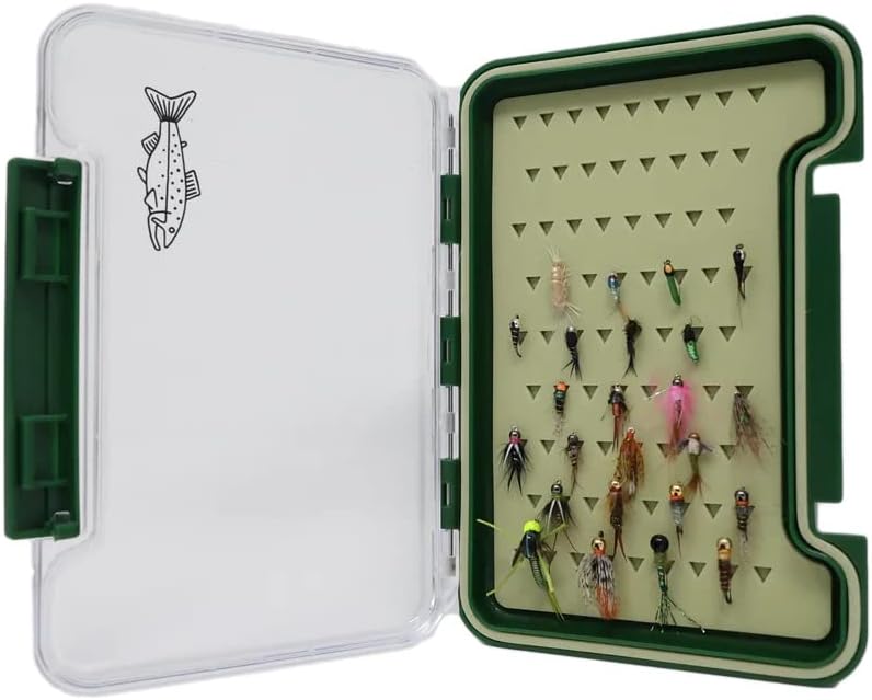 This is our minimal slim fly box with an assortment of 24 dry flies. This box has a silicone insert with slits to securely hold your flies in place. It has a very low profile so will fit in a variety of different packs. We have included 24 nymphs to get you started.